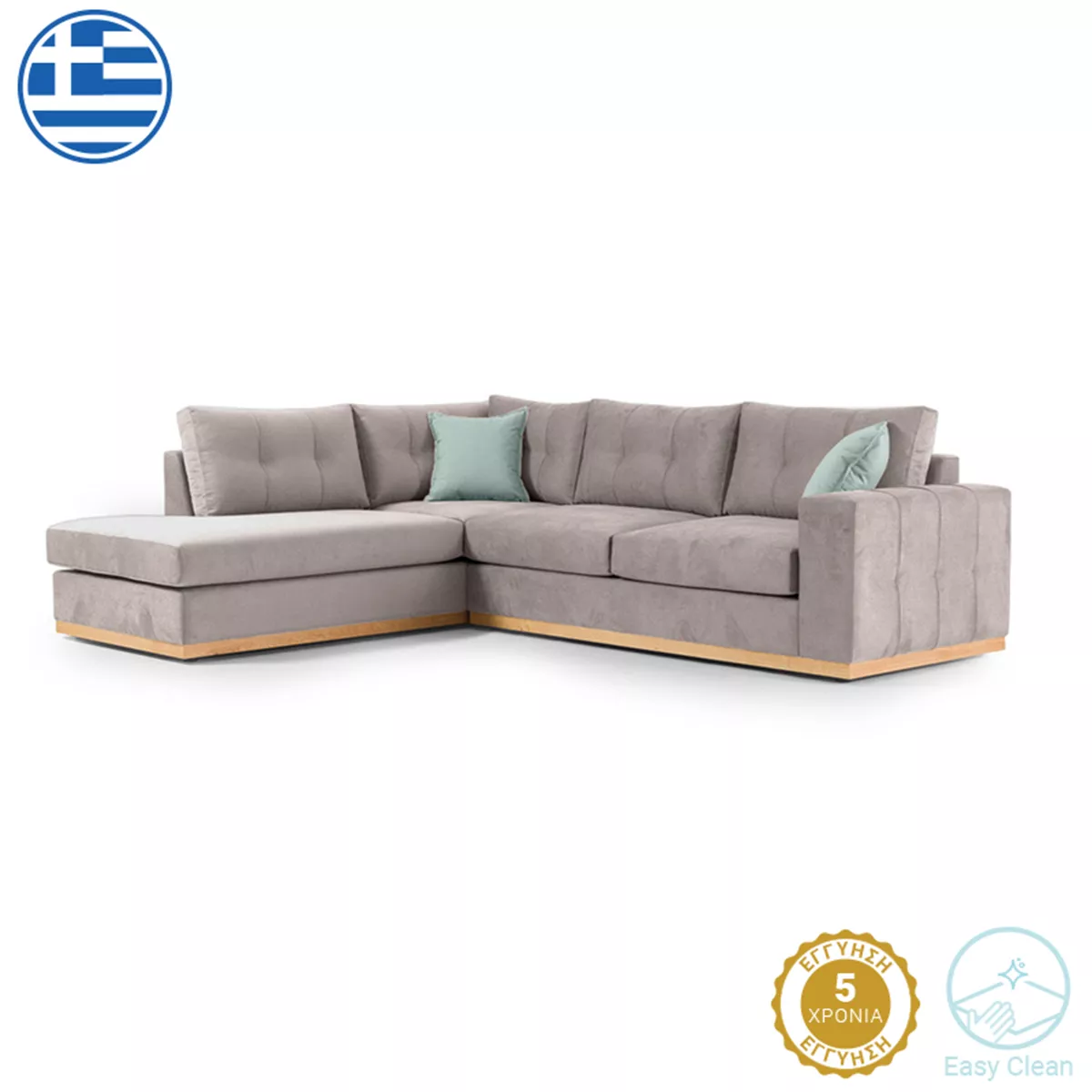 Γωνιακός καναπές δεξιά γωνία Boston pakoworld ύφασμα elephant-ciel 280x225x90εκ