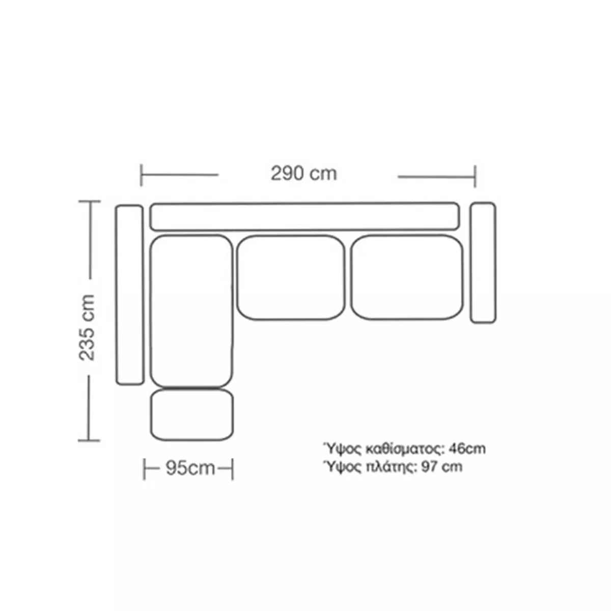 Διάσταση συνολικού καναπέ: