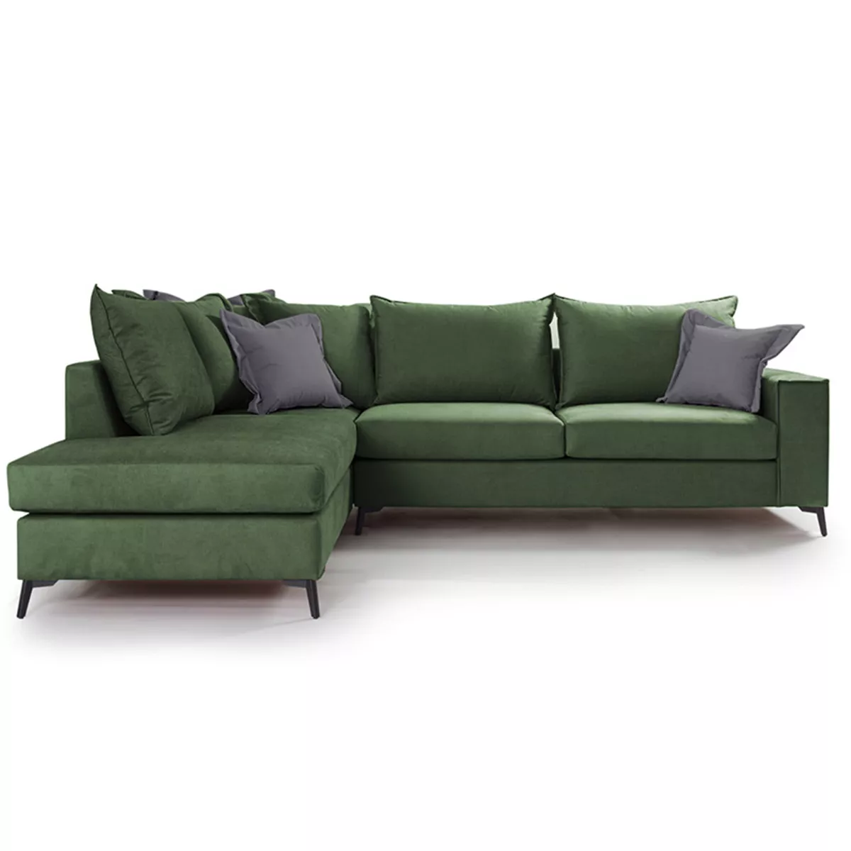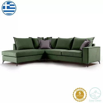 Γωνιακός καναπές δεξιά γωνία Romantic pakoworld ύφασμα κυπαρισσί-ανθρακί 290x235x95εκ