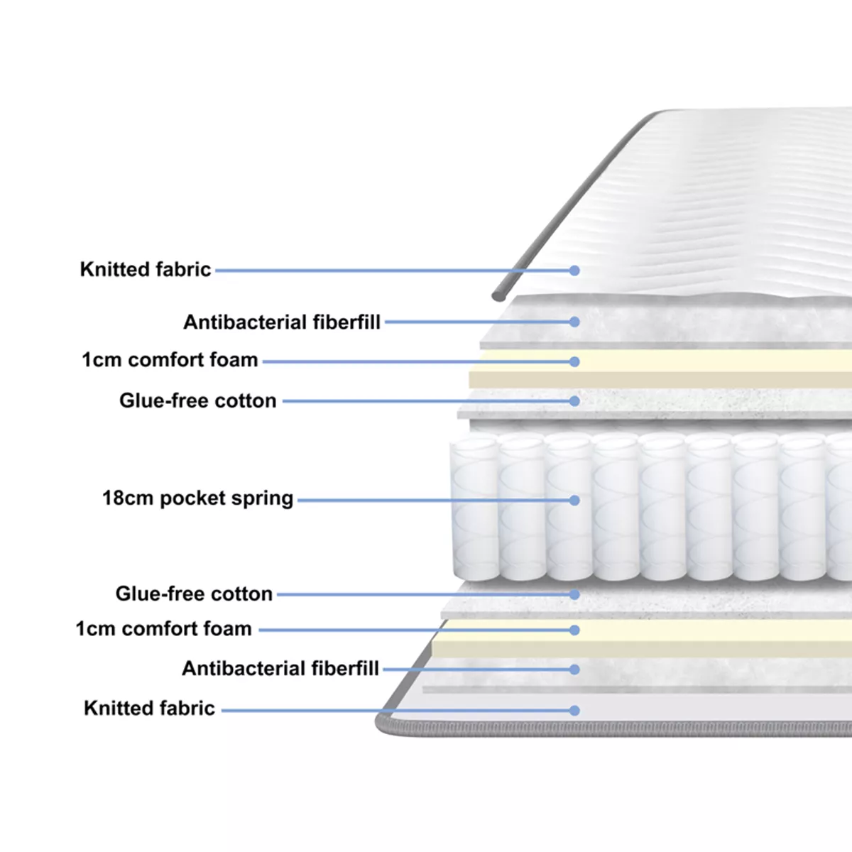 - Αντιβακτηριδιακές ίνες & αφρός άνεσης: Προσθέτουν αίσθηση απαλότητας, υγιεινής και ανθεκτικότητας.