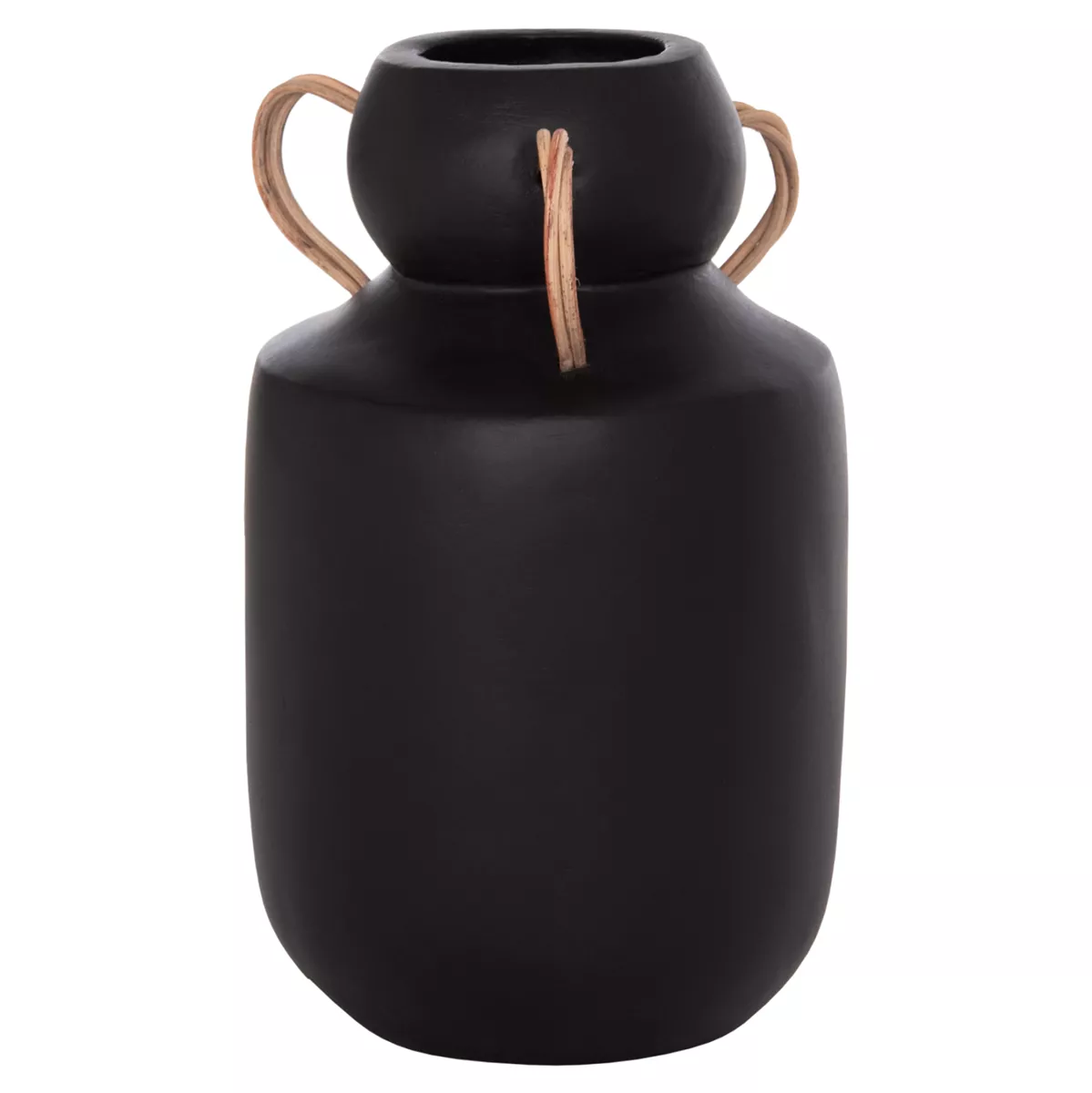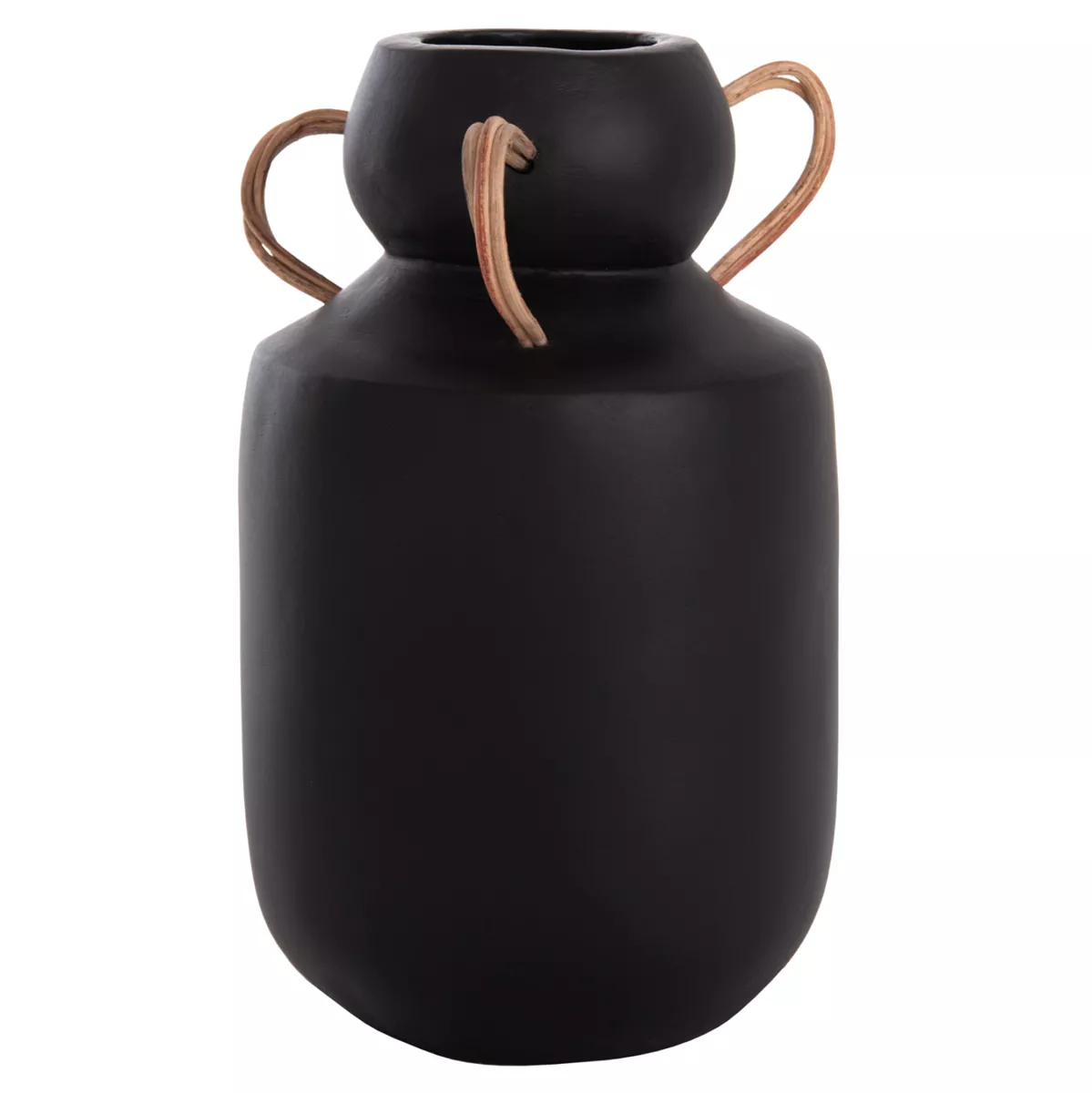 Το διακοσμητικό βάζο MIBO έχει κλασικό σχήμα ενώ διαθέτει χερούλια στο επάνω μέρος από φυσικό rattan. Είναι σε ΜΑΥΡΗ απόχρωση και μπορεί να ταιριάξει οπουδήποτε το θελήσετε. Είτε στο σπίτι είτε σε επαγγελματικούς χώρους.