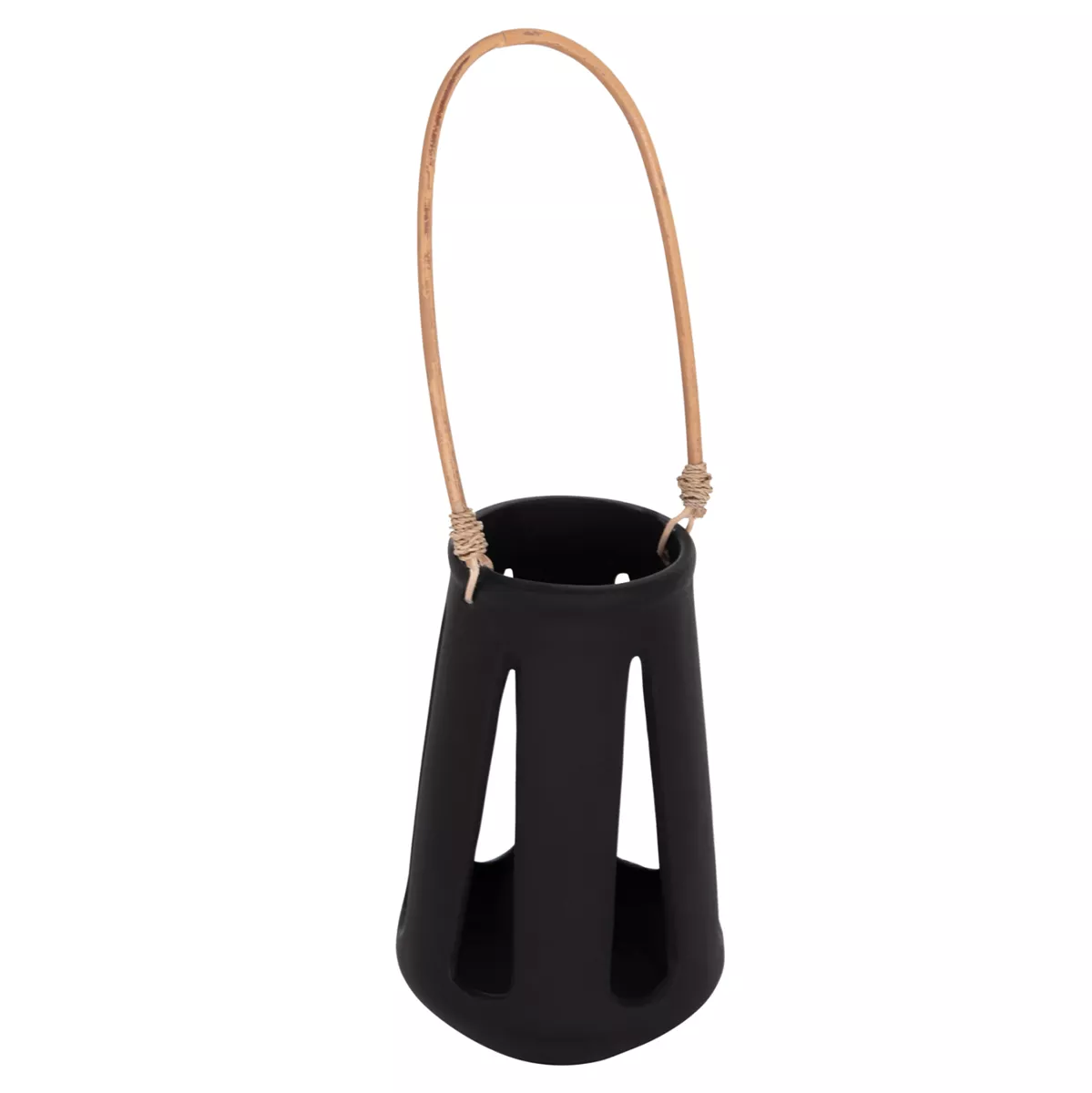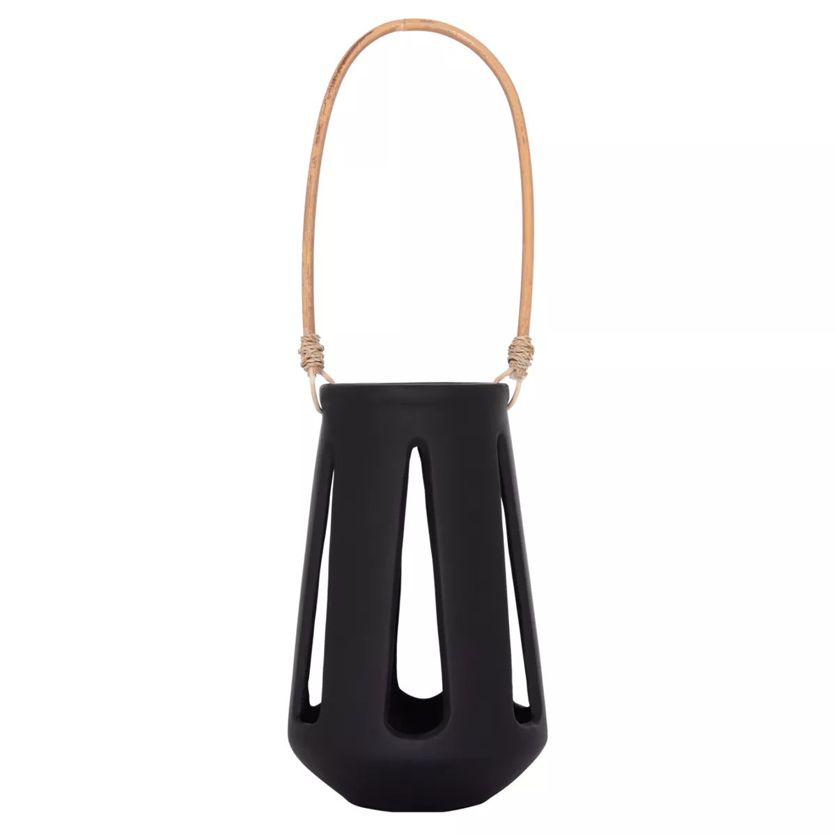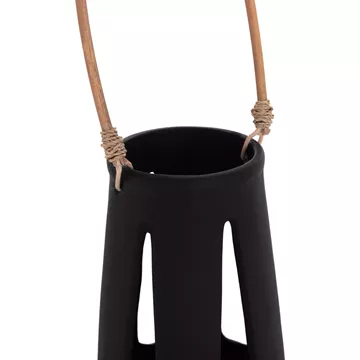 Το επιτραπέζιο διακοσμητικό φανάρι ERANTYL είναι κατασκευασμένο από Fiber Cement σε ΜΑΥΡΟ χρώμα και διαθέτει χερούλι από φυσικό rattan για εύκολη μεταφορά. Το Fiber Cement ΔΕΝ είναι εύφλεκτο, που σημαίνει ότι μπορείτε να τοποθετήσετε αρκετά είδη κεριών, ωστόσο συνιστάται ΠΑΝΤΑ αυτό να γίνεται με μεγάλη προσοχή.