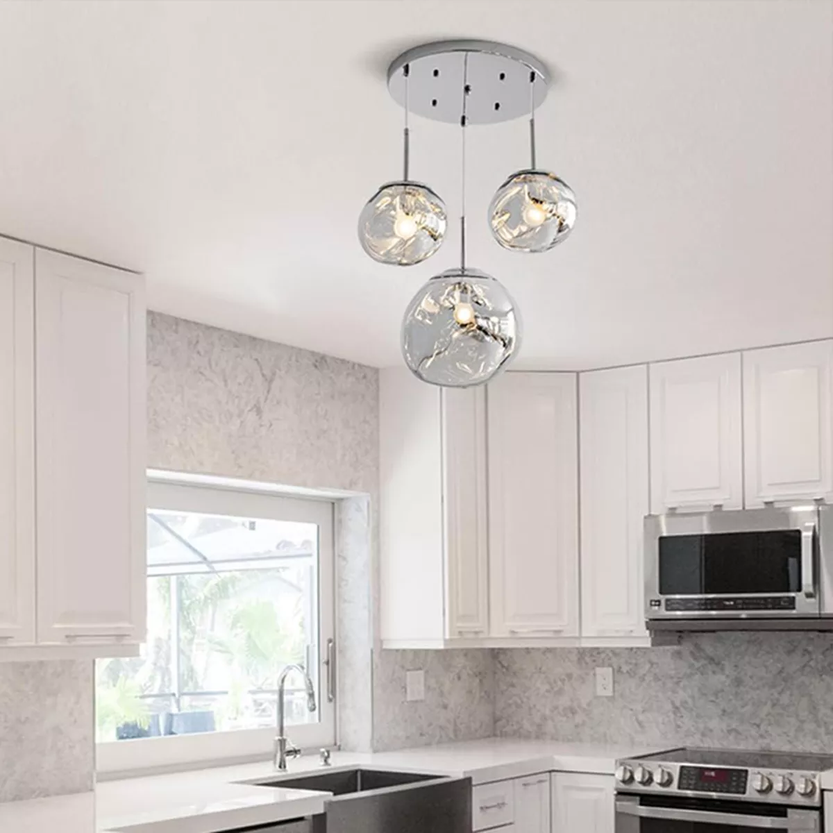 - Μοναδικό Chrome Design: Τα τρία φωτιστικά σώματα με την οργανική, ρευστή τους μορφή και το εντυπωσιακό φινίρισμα Chrome δημιουργούν ένα εντυπωσιακό εφέ, αντανακλώντας το φως και τον περιβάλλοντα χώρο με μοναδικό τρόπο.