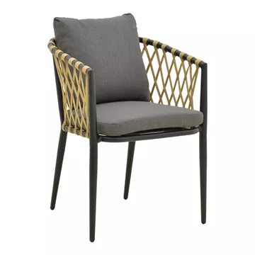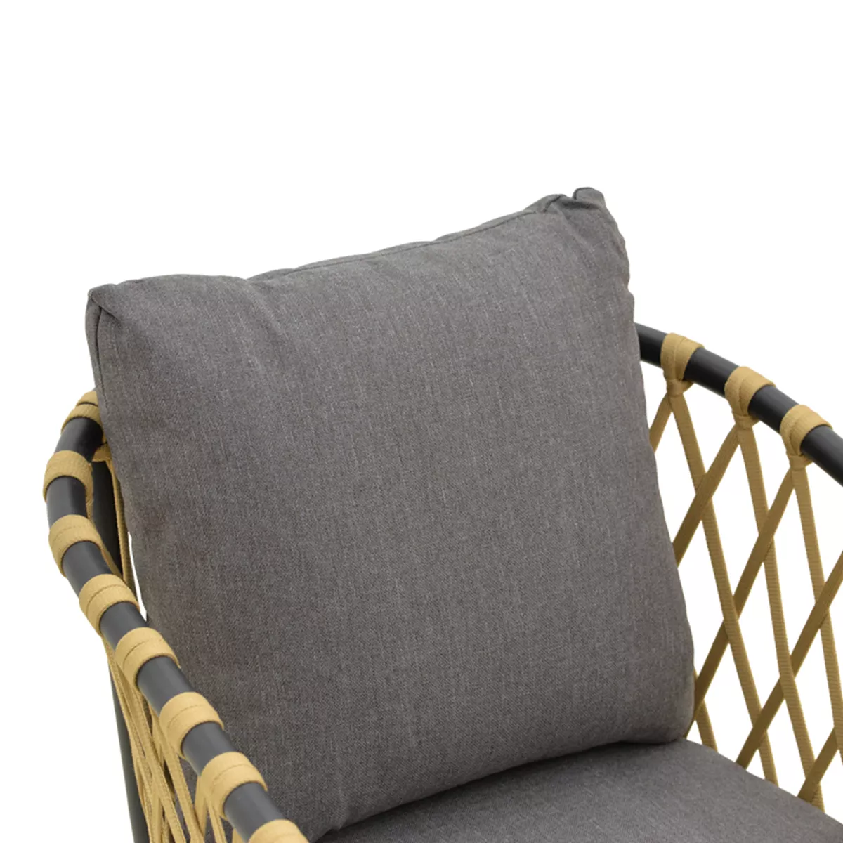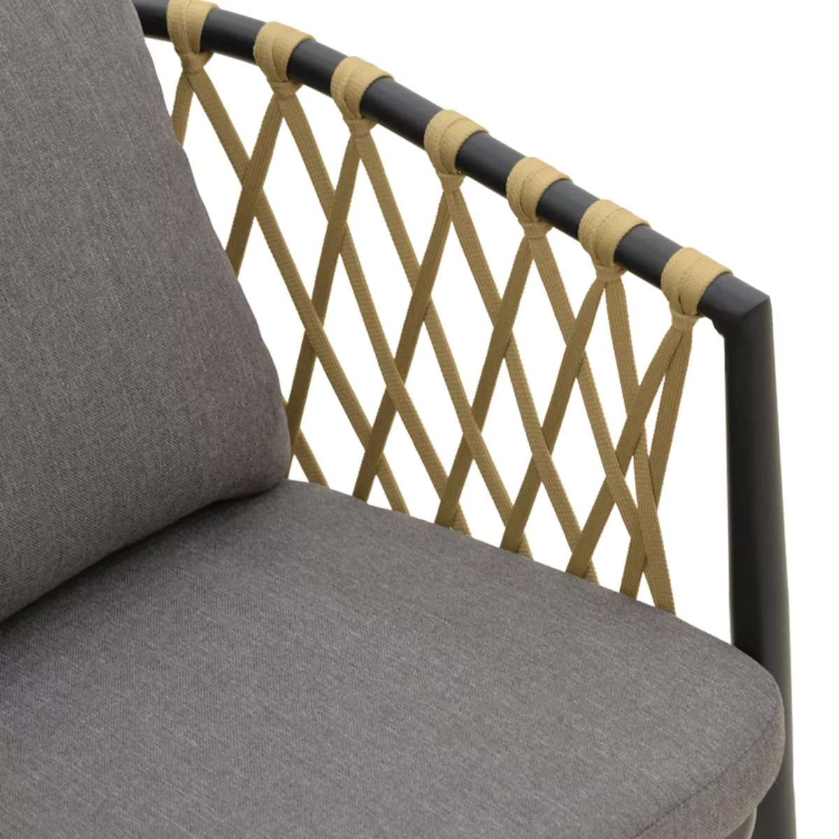 Peluxe, συνδυάζοντας σύγχρονο design και εξαιρετική άνεση. Με ανθεκτικό σκελετό αλουμινίου σε ανθρακί και ντύσιμο με σχοινί σε φυσική απόχρωση , προσφέρει μοναδικό χαρακτήρα και στιβαρότητα.