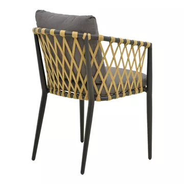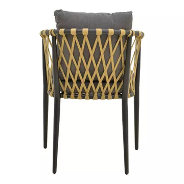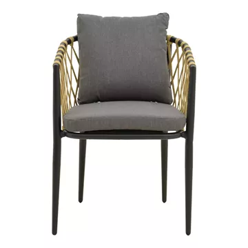- Το κάθισμα και η πλάτη διαθέτουν μαξιλάρια σε γρι χρώμα από 100% πολυεστέρα, με αφρό πυκνότητας 18 kg/m³ για άνεση που διαρκεί.