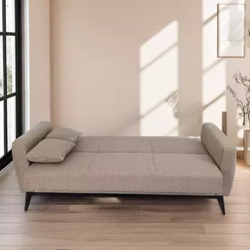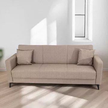 Artekko Pixie Μπεζ Τριθέσιος Καναπές Κρεβάτι με Αποθηκευτικό Χώρο (205x80x85)cm Κρεβάτι (180x100x45)cm