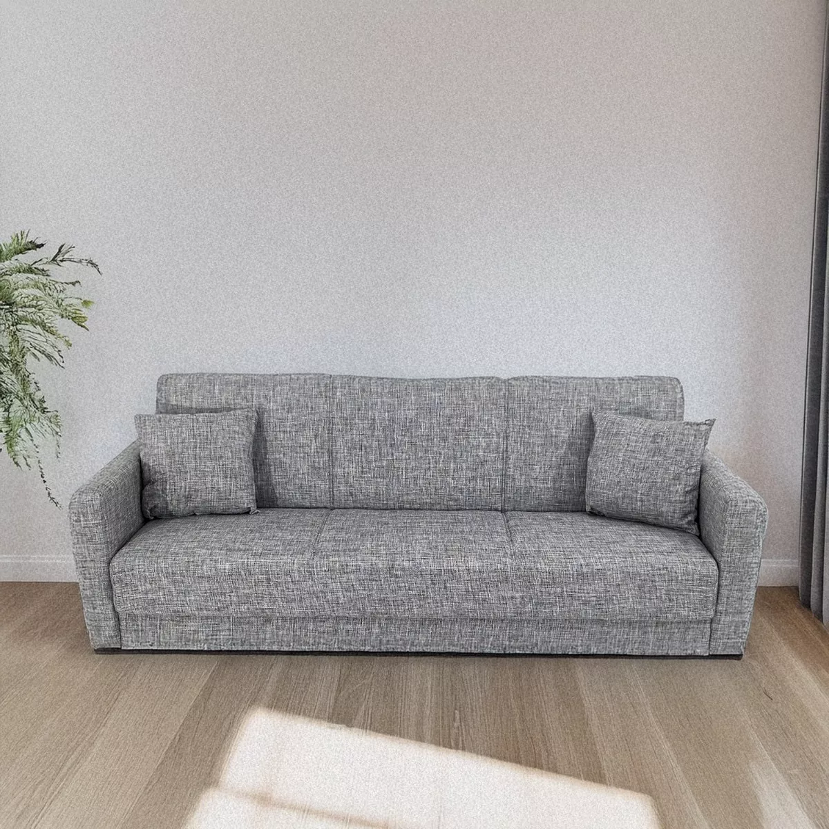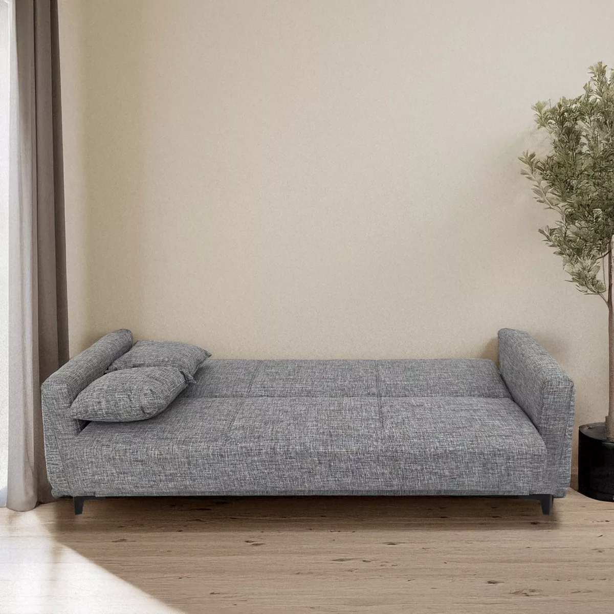 Γκρι Τριθέσιος Καναπές Κρεβάτι με Αποθηκευτικό Χώρο
