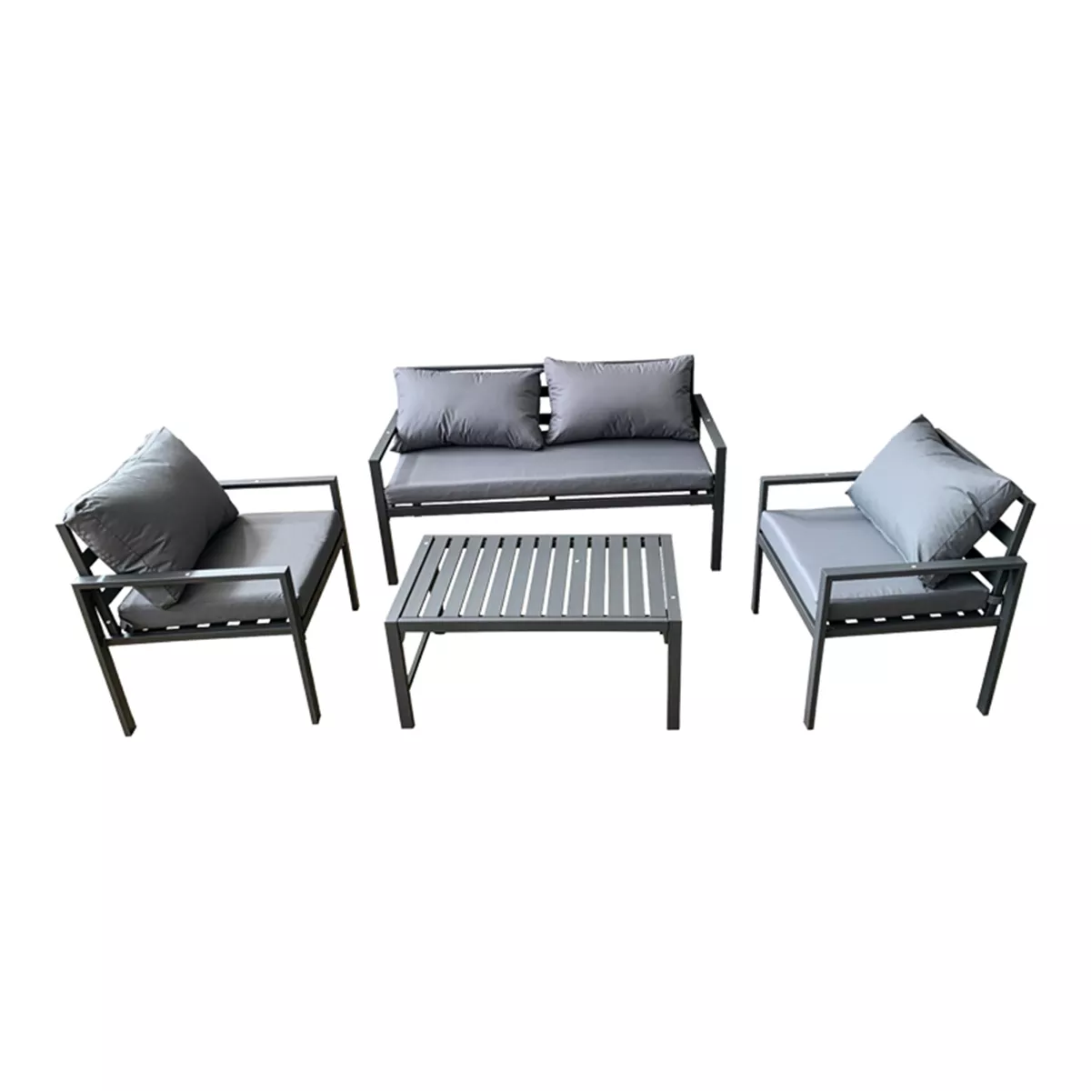 Σετ Κήπου 4 Τεμαχίων με ανθρακί Μεταλλικό Σκελετό & Γκρι Μαξιλάρια