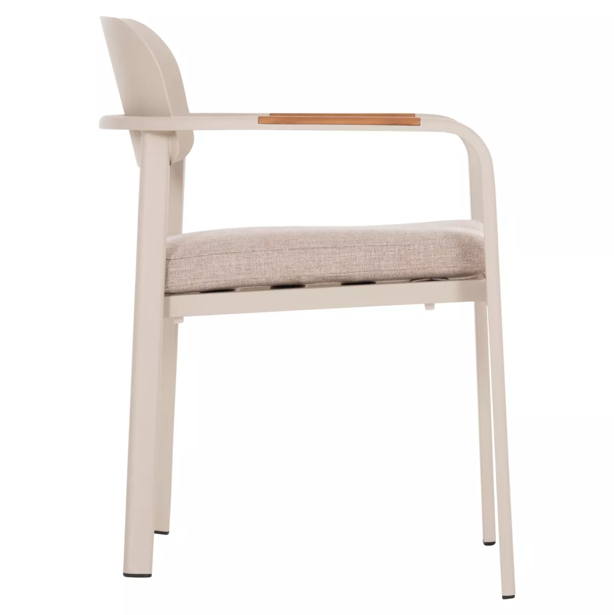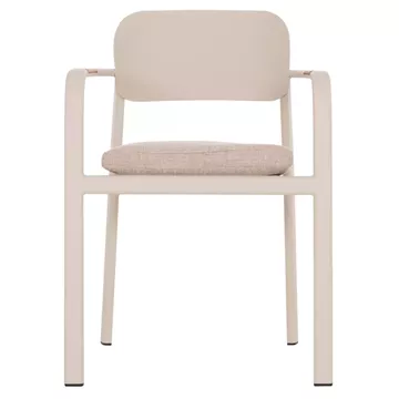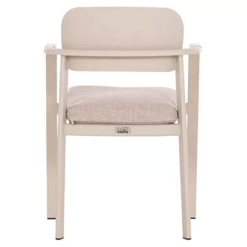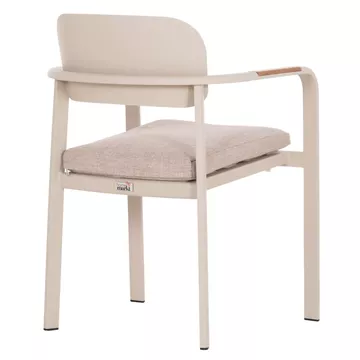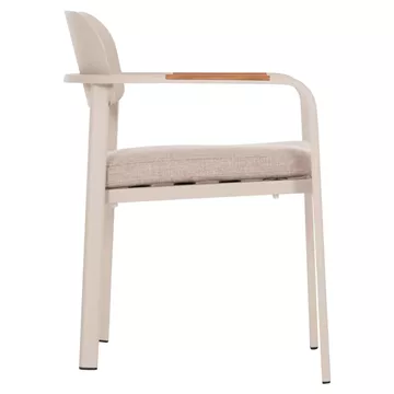 Η πολυθρόνα εξωτερικού χώρου ELARA συνδυάζει μοντέρνα αισθητική, ανθεκτικά υλικά και πρακτική λειτουργικότητα. Ο σκελετός από αλουμίνιο σε ΜΠΕΖ χρώμα προσφέρει υψηλή αντοχή στις εξωτερικές συνθήκες, ενώ τα διακοσμητικά τελειώματα από ξύλο teak στα μπράτσα προσθέτουν φυσική και ζεστή πινελιά. Το μαξιλάρι καθίσματος διαθέτει κάλυμμα OLEFIN σε ΜΠΕΖ χρώμα και αφρό 25D για άνεση κατά τη χρήση. Στοιβαζόμενη για εύκολη αποθήκευση.