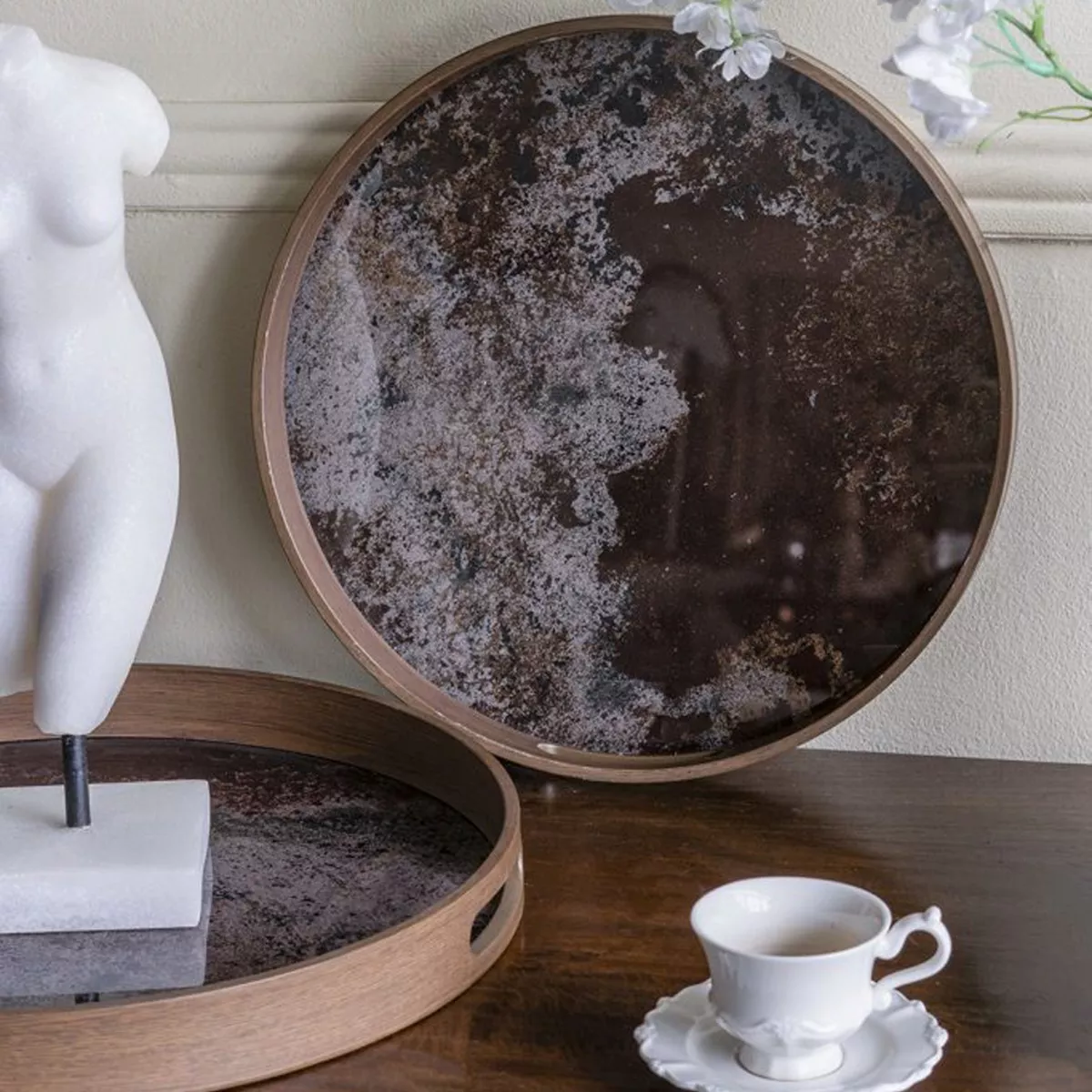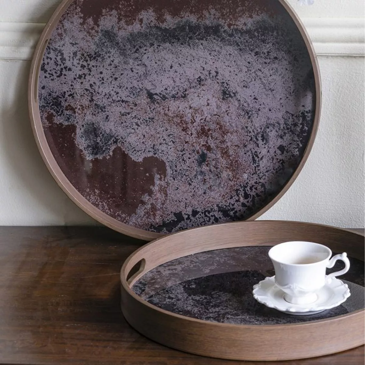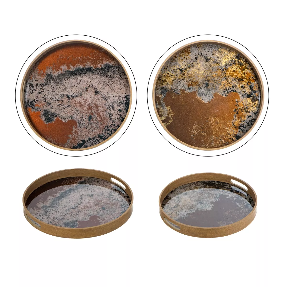 Καφέ Διακοσμητικοί Δίσκοι με Γυάλινη Επιφάνεια σε Εφέ Μαρμάρου 2pcs