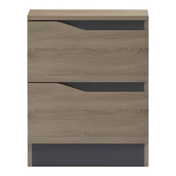 Το μοντέρνο και λειτουργικό κομοδίνο Verena II αποτελεί μια κομψή προσθήκη σε κάθε υπνοδωμάτιο. Ο μινιμαλ σχεδιασμός και η επιλογή των χρωμάτων του , προσδίδει μια ζεστασιά και μια μοντέρνα αίσθηση στο χώρο, ενώ τα δύο ευρύχωρα συρτάρια προσφέρουν πρακτική αποθήκευση για βιβλία, προσωπικά αντικείμενα και άλλα απαραίτητα.