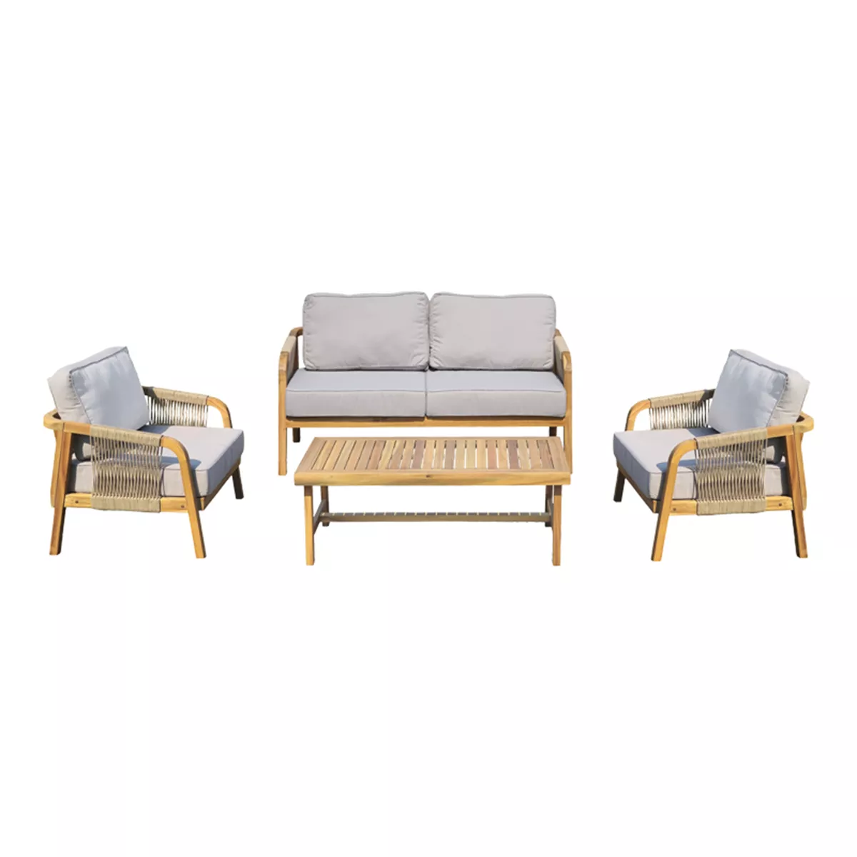 - Σκελετός κατασκευασμένος από μασίφ ξύλο ακακίας που συνδυάζεται αρμονικά με πλέξη από σχοινί PP, προσφέροντας στιλ και αντοχή σε φυσικό χρώμα.