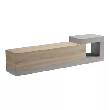 - Με αποθηκευτικους χώρους: Ενα κλειστο συρτάρι για διακριτική αποθήκευση συσκευών πολυμέσων, καλωδίων και άλλων αντικειμένων και μια ανοιχτή θέση στο πλαϊνό, ενα ανοιχτό ράφι σχήματος 'L', ιδανικό για την προβολή διακοσμητικών αντικειμένων, βιβλίων ή περιοδικών.