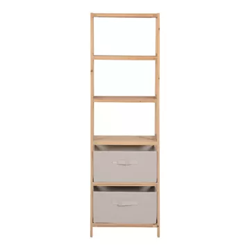 Ενισχύστε την οργάνωση και την αισθητική του χώρου σας με αυτή την ευέλικτη και καλαίσθητη ραφιέρα. Ο συνδυασμός του ξύλινου σκελετού με τα υφασμάτινα συρτάρια δημιουργεί ένα μοναδικό έπιπλο που συνδυάζει την ανοιχτή αποθήκευση με την κρυφή. Η λιτή και μοντέρνα σχεδίαση της την καθιστά ιδανική για κάθε δωμάτιο, είτε πρόκειται για το σαλόνι, το υπνοδωμάτιο, το παιδικό δωμάτιο ή το μπάνιο.