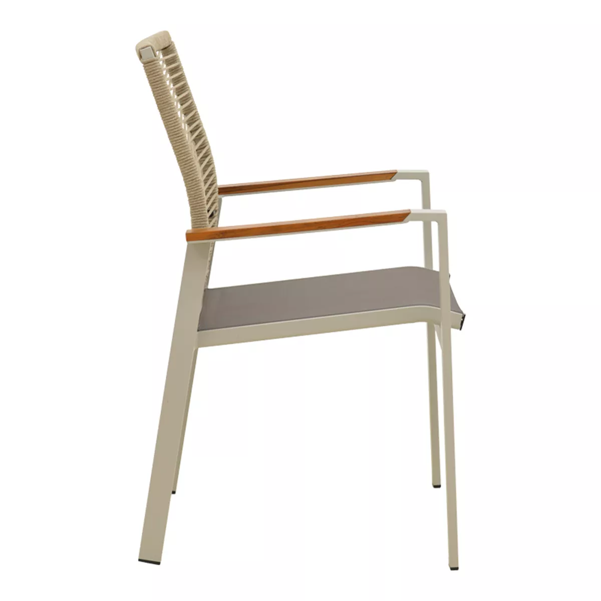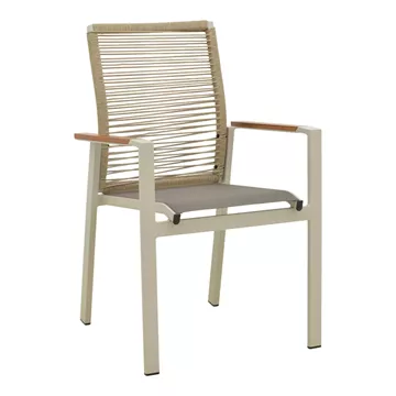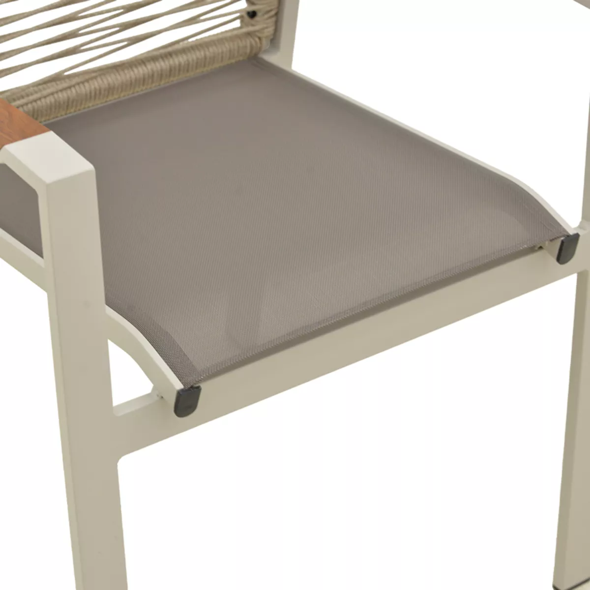 - Μοναδική Αίσθηση με Σχοινί & Teak: Η πλέξη από ανθεκτικό σχοινί (Ø5mm) προσφέρει μια ξεχωριστή, ανάλαφρη υφή. Τα μπράτσα από teak ξύλο χαρίζουν μια πολυτελή, φυσική πινελιά και την κάνουν να ξεχωρίζει