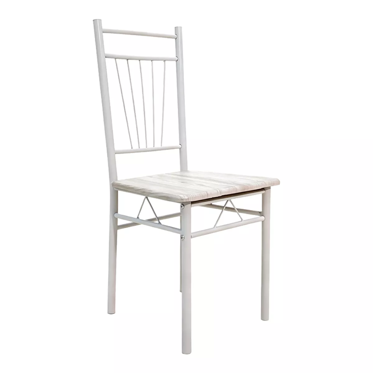 - Στήριξη σε ενισχυμένο μεταλλικό σκελετό που καταλήγει σε τέσσερα στρόγγυλα μεταλλικά πόδια, ηλεκτροστατικής βαφής λευκού glossy χρώματος.
