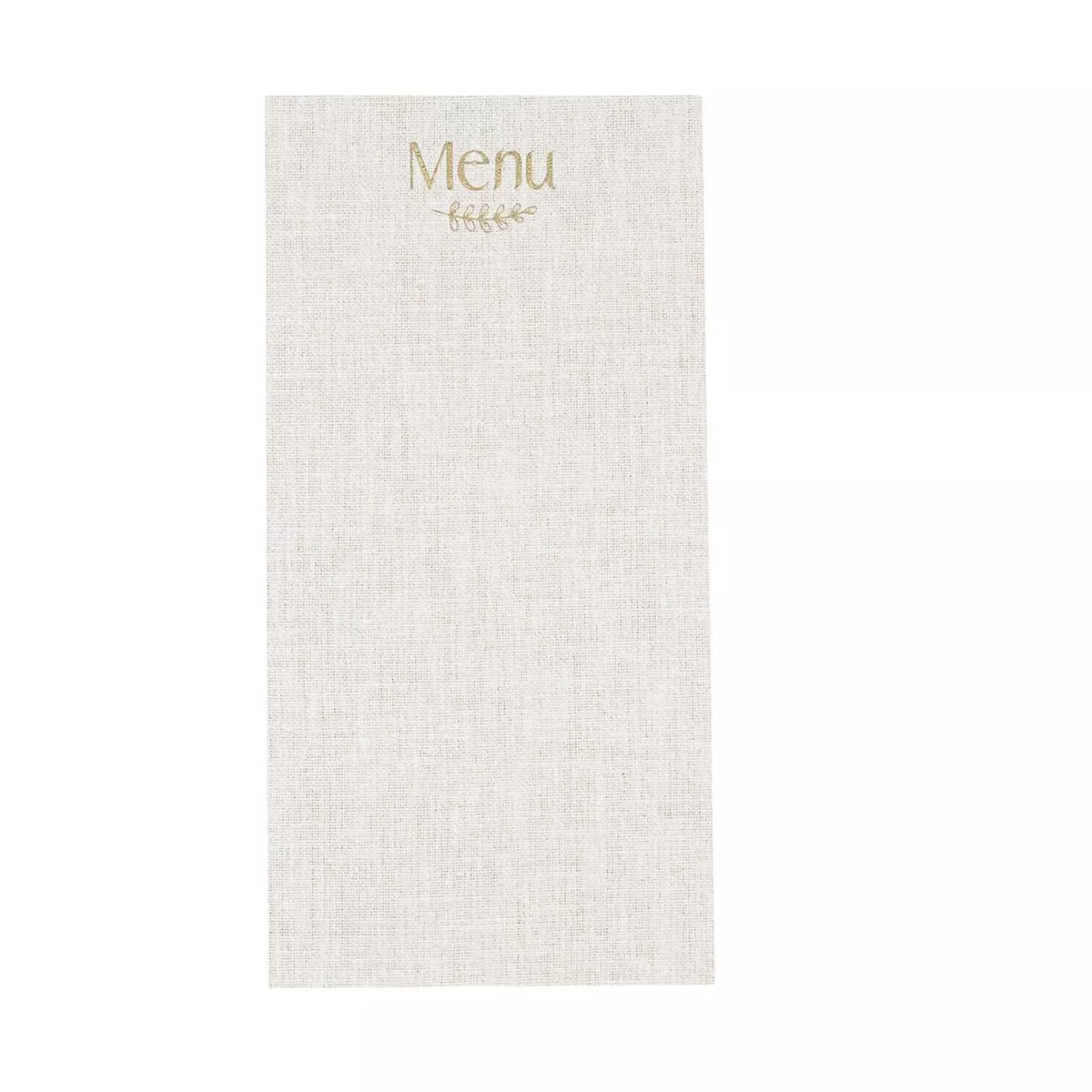 Beauty Home 10 Κάρτες χάρτινες menu με εφέ λινού με κορδόνι Μπεζ και χρυσό χαρτί 10 x 20 cm