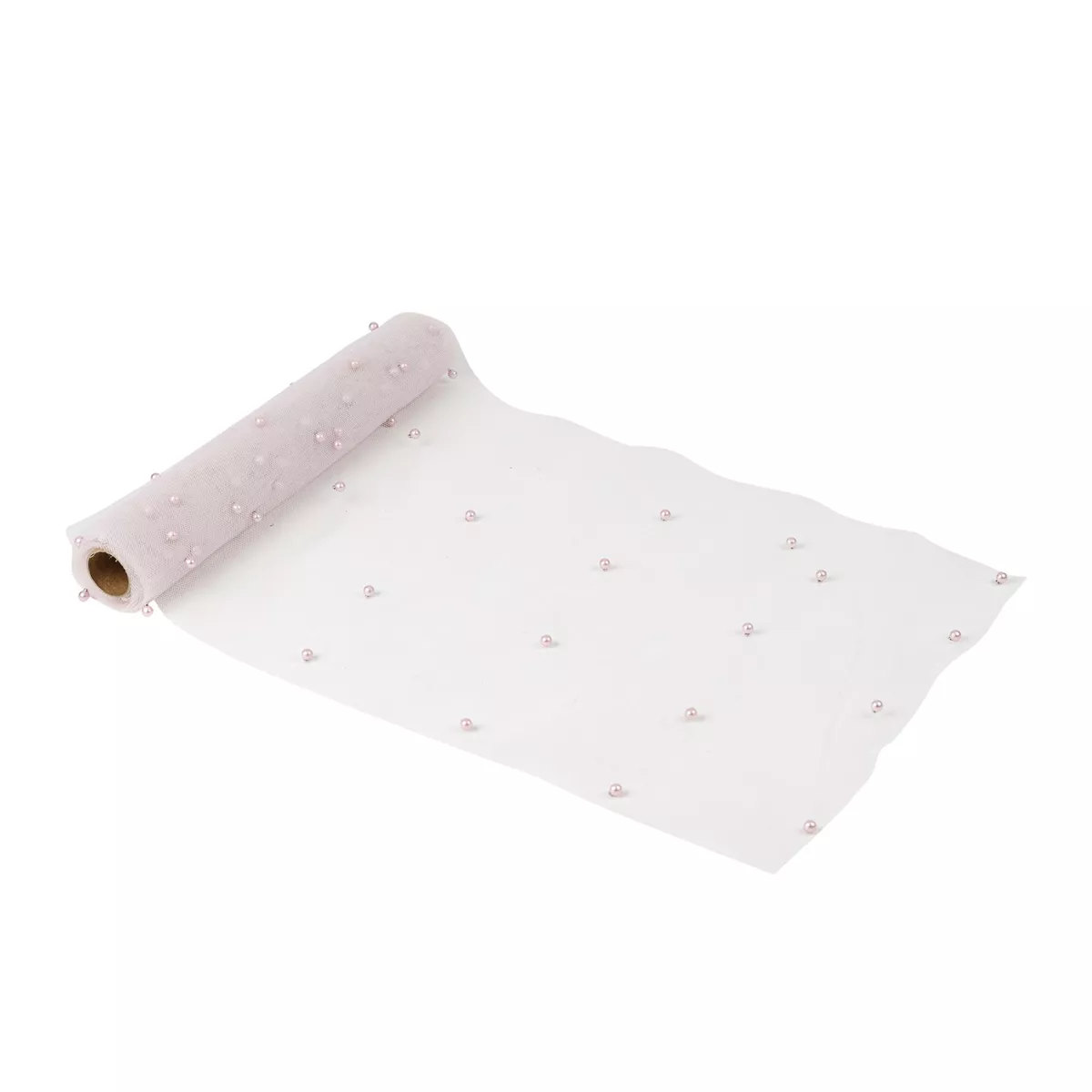 Beauty Home Ράννερ με πέρλες – Ροζ οργάντζα 28 cm x 5 m