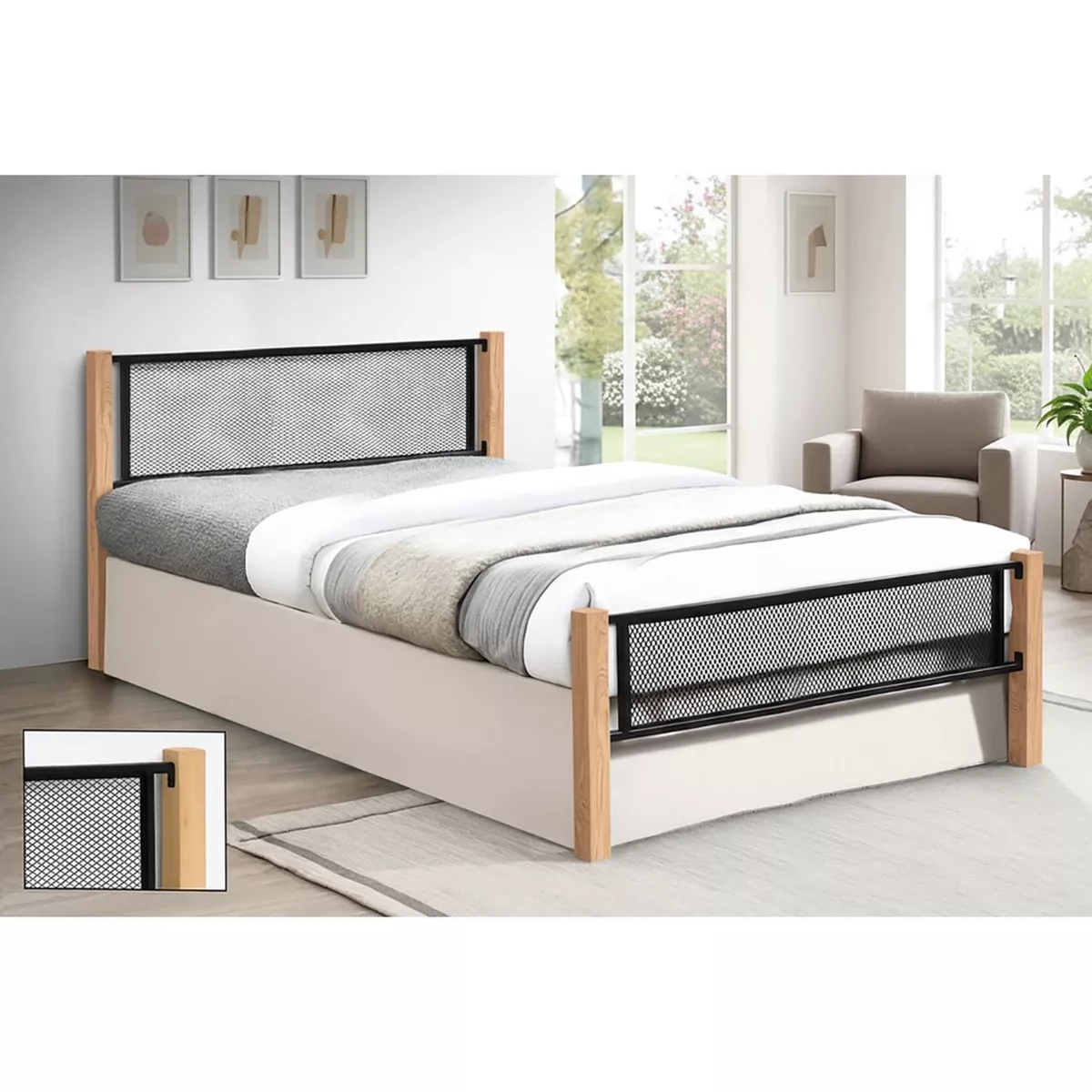 ΝΕΤ Κρεβάτι Διπλό για Στρώμα 150x200cm, Μέταλλο Βαφή Μαύρο, Ξύλο Φυσικό