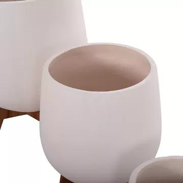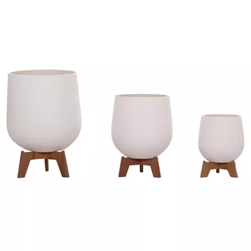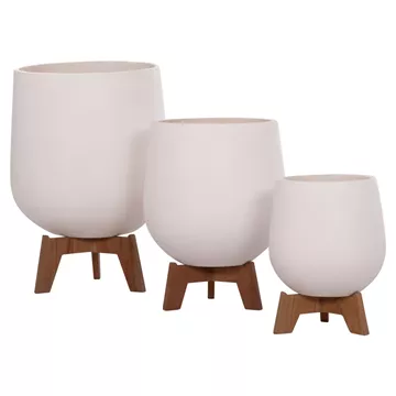 Οι 3 γλάστρες/βάζα TRYLL είναι κατασκευασμένες από Fiber Cement σε διαφορετικά μεγέθη σε ΛΕΥΚΟ χρώμα. Το ιδιαίτερο χαρακτηριστικό τους είναι ότι συνοδεύονται από όμορφες τρίποδες βάσεις από ξύλο TEAK.
