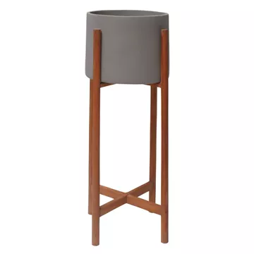 Η γλάστρα εσωτερικού χώρου (κασπό) RENTIL είναι κατασκευασμένη από Fiber Cement σε ΓΚΡΙ χρώμα. Το ιδιαίτερο χαρακτηριστικό της είναι ότι συνοδεύεται και τοποθετείται σε μια ψηλή χιαστί βάση από ξύλο teak.
