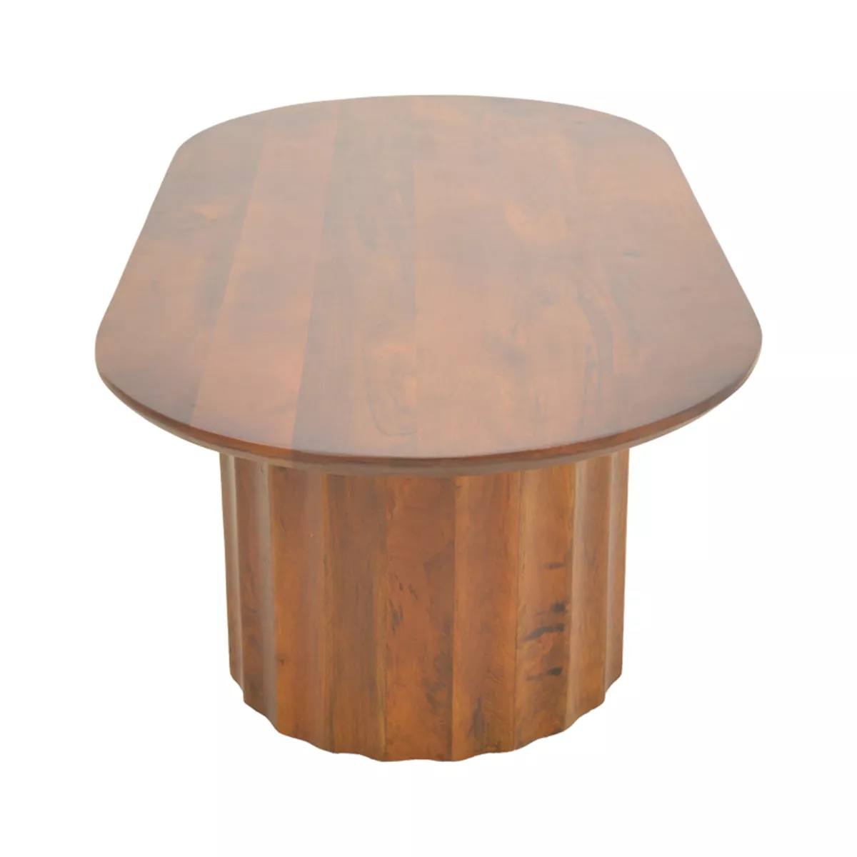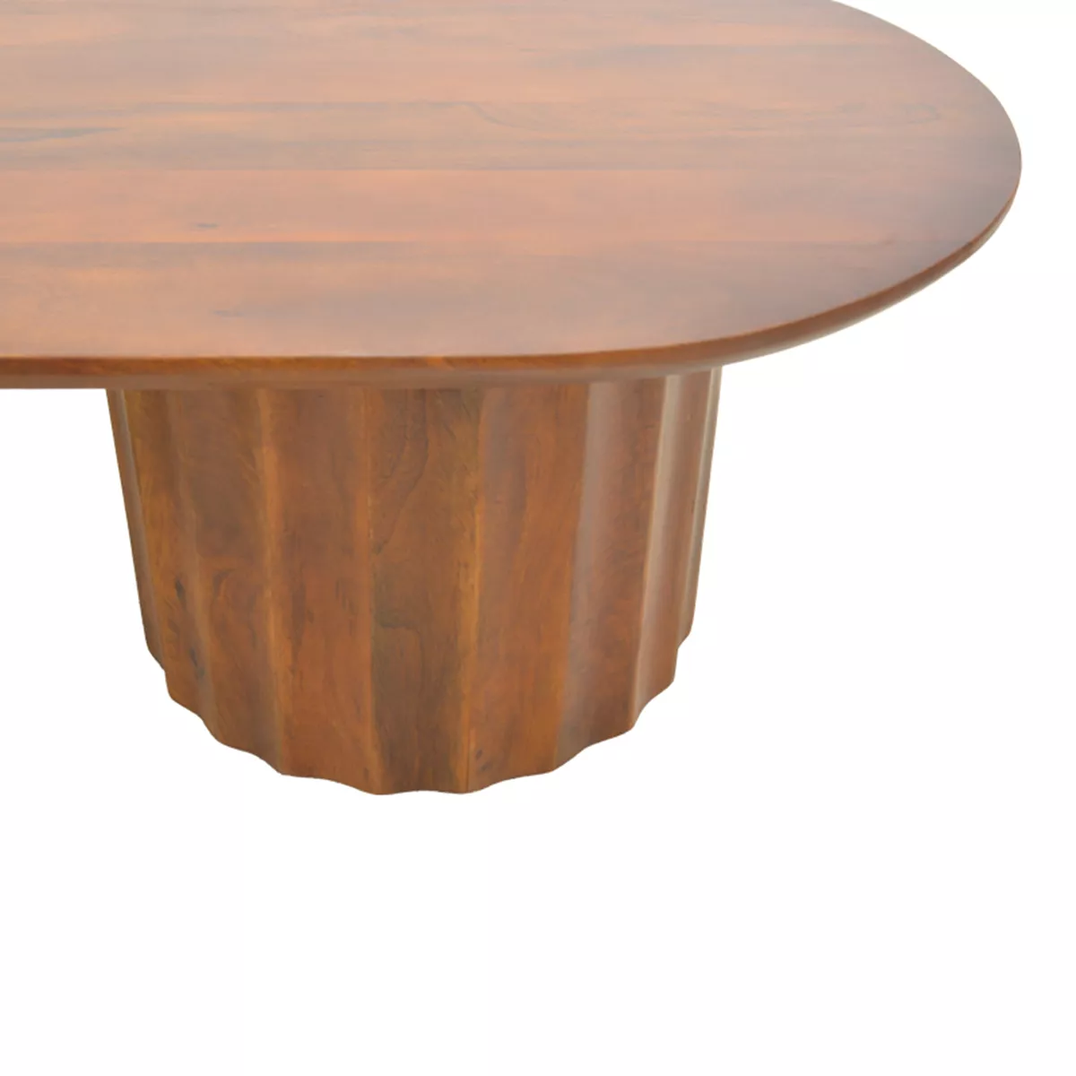 Eνα εντυπωσιακό τραπέζι σαλονιού, το οποίο χαρακτηρίζεται από έναν σύγχρονο μινιμαλισμό και μια δυναμική ασυμμετρία. Η υποστήριξη της επιφάνειας επιτυγχάνεται μέσω δύο διαφορετικών, κυλινδρικών βάσεων: η μία είναι λεία και λιτή, ενώ η άλλη ξεχωρίζει με μια ανάγλυφη, κάθετη ραβδωτή υφή.