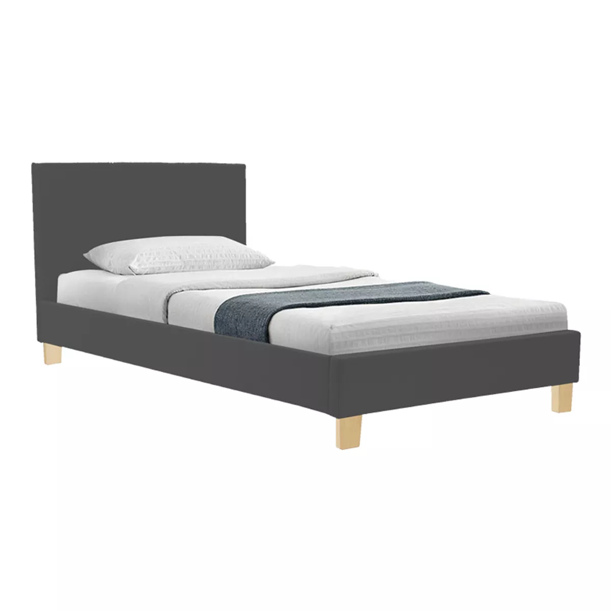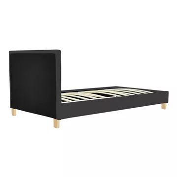 Το κρεβάτι Nevil είναι η επιτομή της σύγχρονης λιτότητας, καθώς ο ενιαίος, επενδυμένος όγκος του σκελετού και του ψηλού κεφαλαριού ντύνεται εξ ολοκλήρου στο δυναμικό ανθρακί χρώμα. Η οπτική βαρύτητα του ανθρακί απογειώνεται από τη λεπτομέρεια της βάσης: τέσσερα λιτά πόδια σε φυσικό χρώμα, προσφέροντας μια ζεστασιά και μια γήινη αντίθεση που "σπάει" τη μονοχρωμία και αναδεικνύει το design. Αυτός ο συνδυασμός σκούρου χρώματος και ξύλινης λεπτομέρειας μετατρέπει το κρεβάτι σε κεντρικό διακοσμητικό στοιχείο, δημιουργώντας μια ζεστή και ταυτόχρονα σοφιστικέ ατμόσφαιρα στον χώρο.