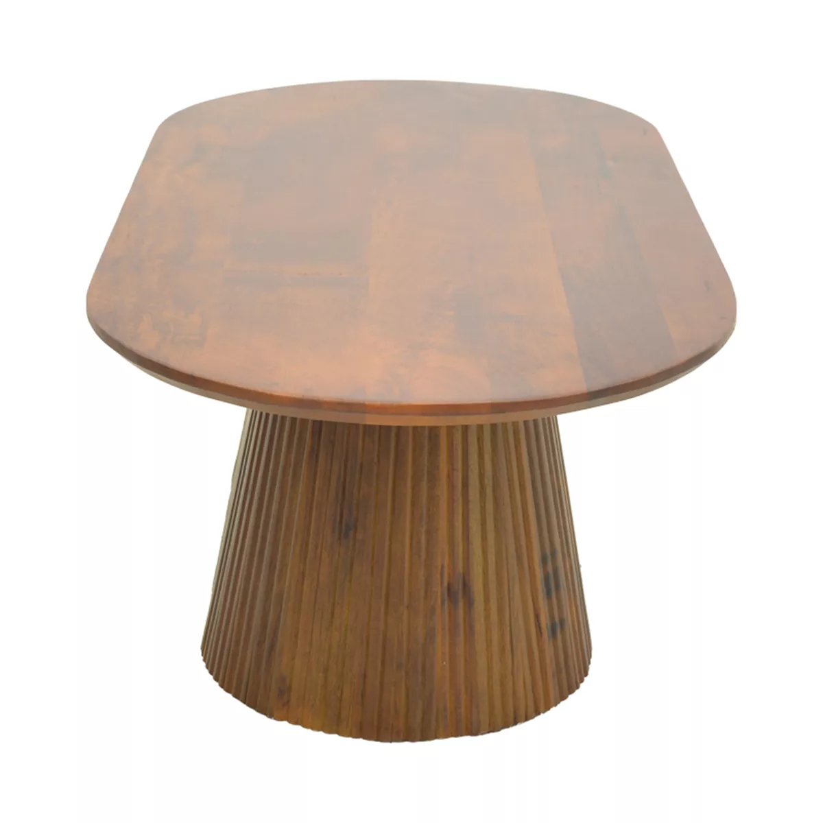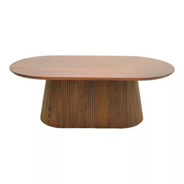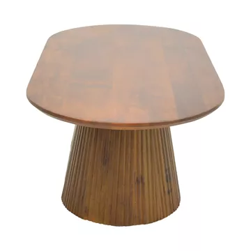 Τραπεζάκι σαλονιού Aithra από μασίφ ξύλο mango με μοντέρνο σχεδιασμό και φυσική αισθητική. Η οβάλ επιφάνειά του αναδεικνύει τη φυσική υφή και τα νερά του ξύλου, προσδίδοντας ζεστασιά και κομψότητα στον χώρο.