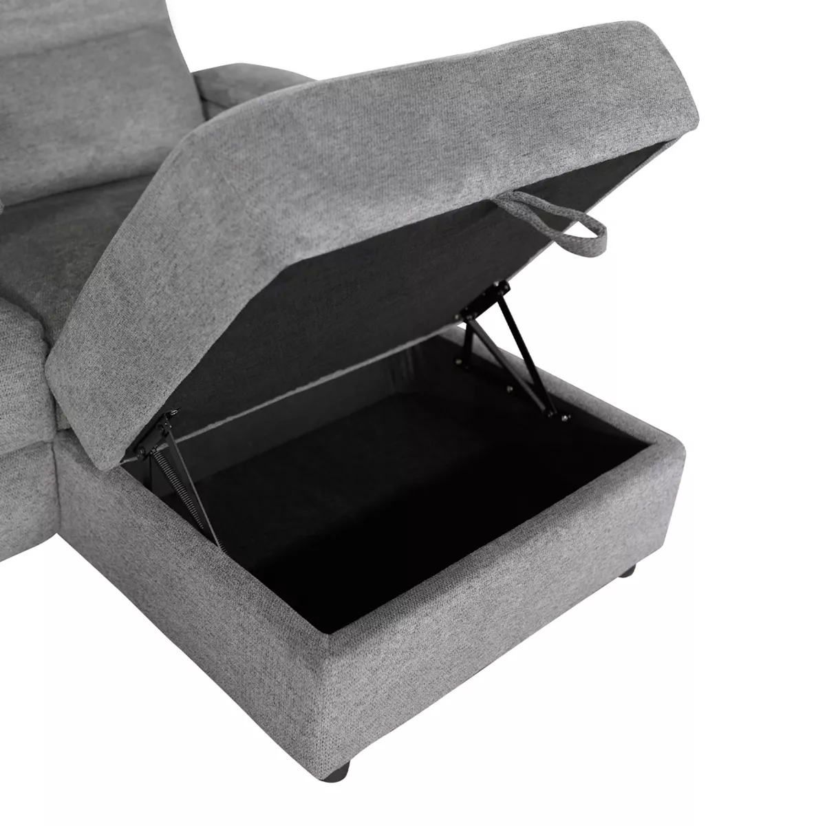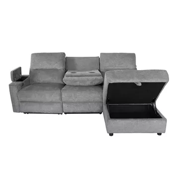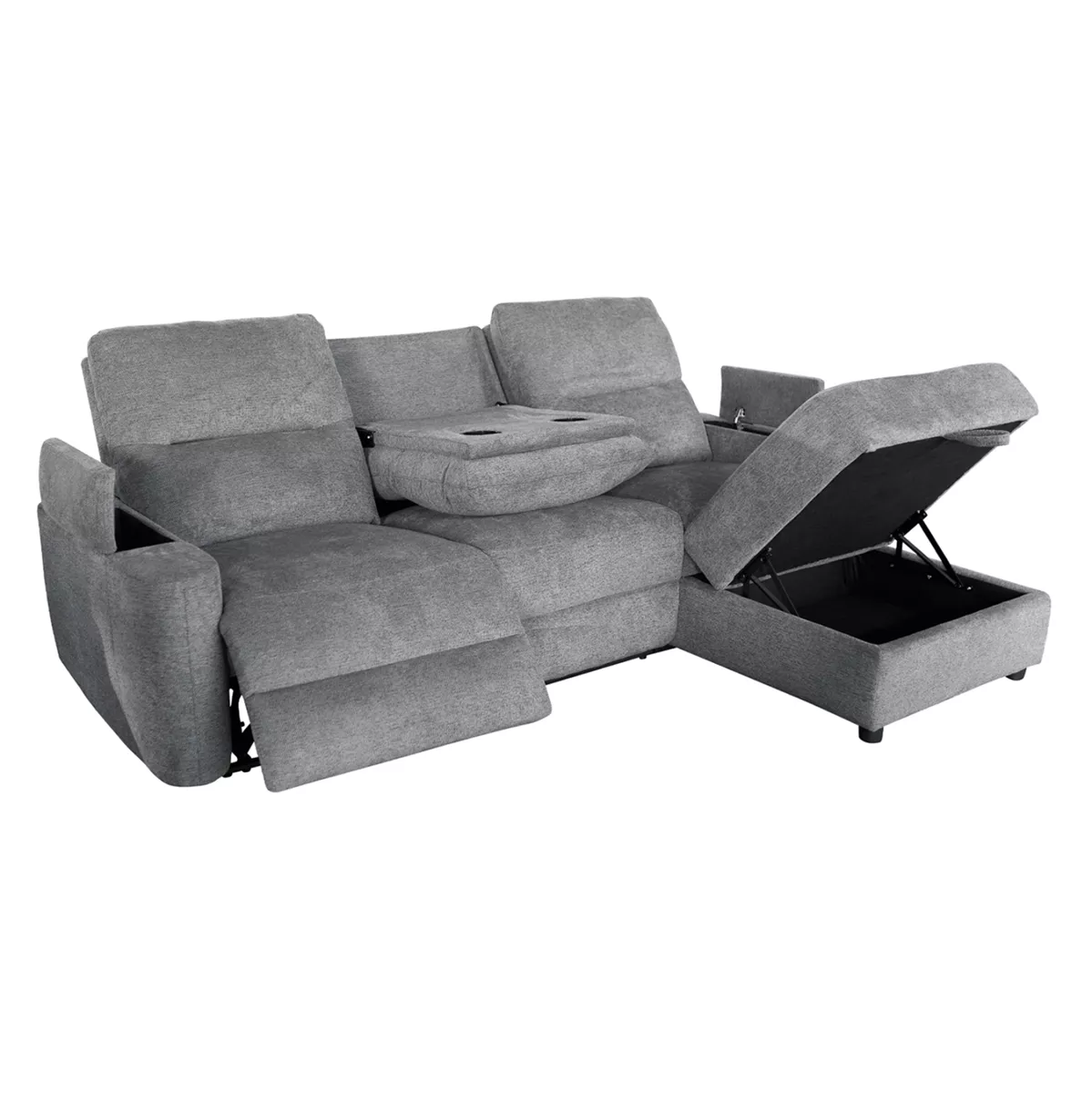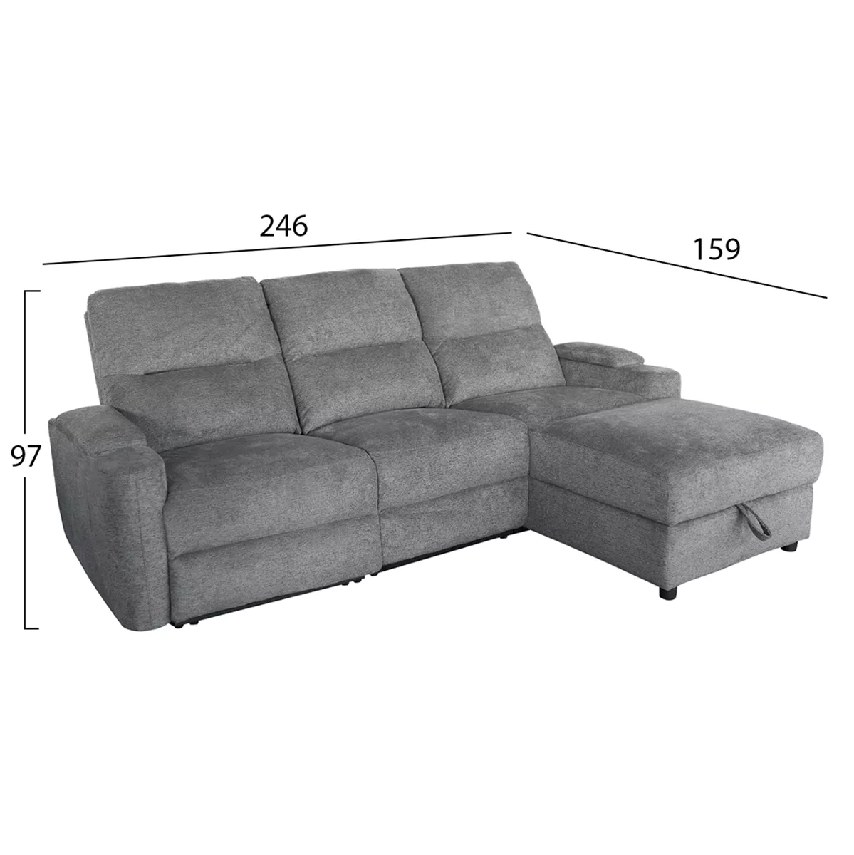 Τριθέσιος Δεξιός Γωνιακός Καναπές SYNTHIA-- ΓΚΡΙ Ύφασμα, με Ηλεκτρικό Ανακλινόμενο Κάθισμα, Αποθηκευτικό Χώρο & Πτυσσόμενο Τραπέζι