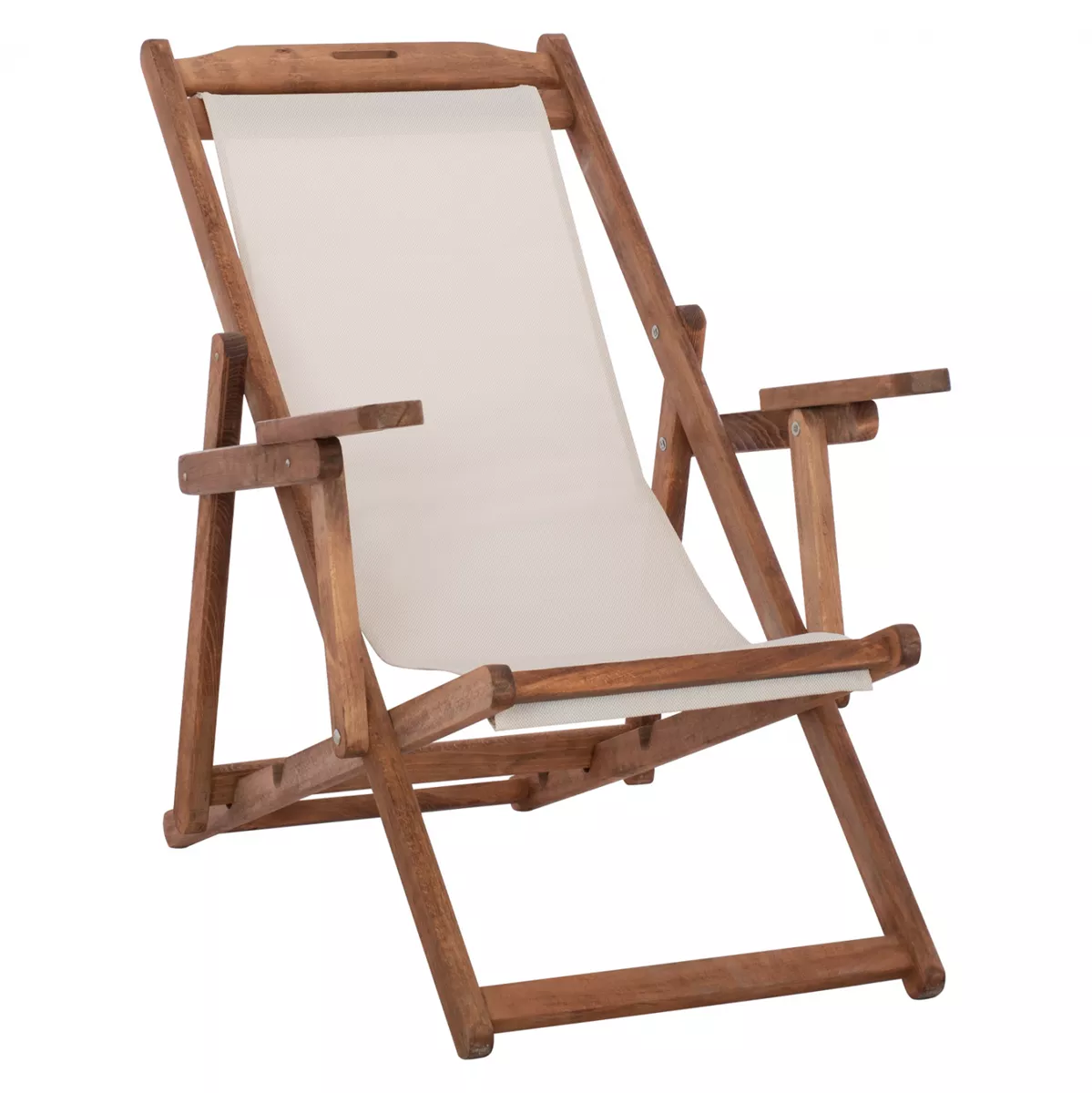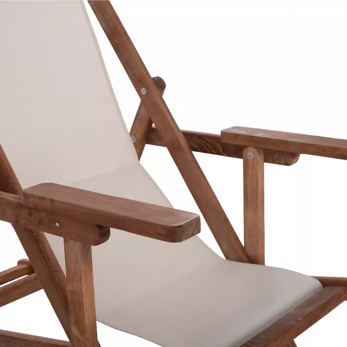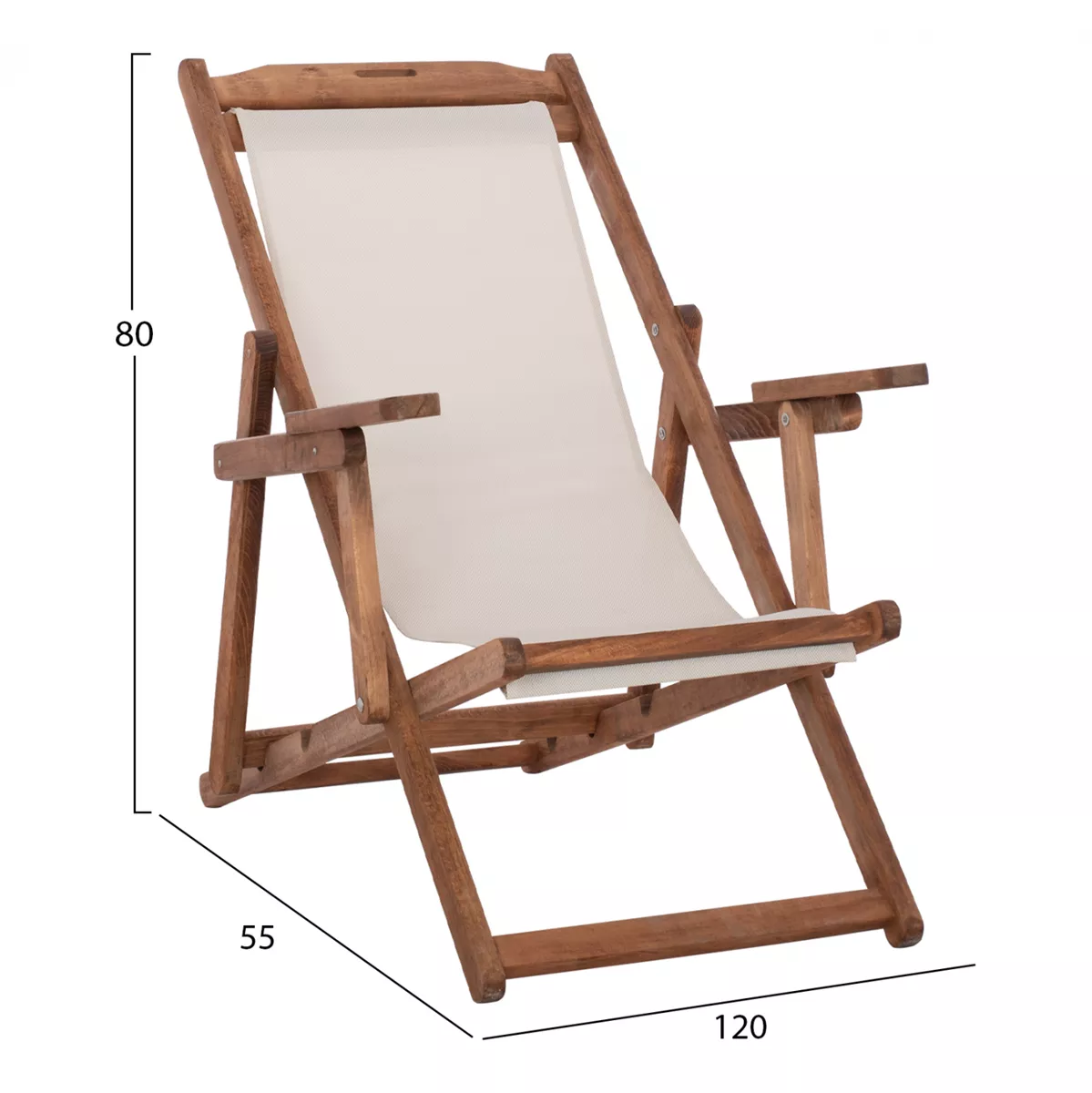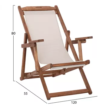 Σεζλόνγκ Λήμνος με μπράτσα σε καρυδί απόχρωση και pvc εκρου 62,5x97x105 εκ.