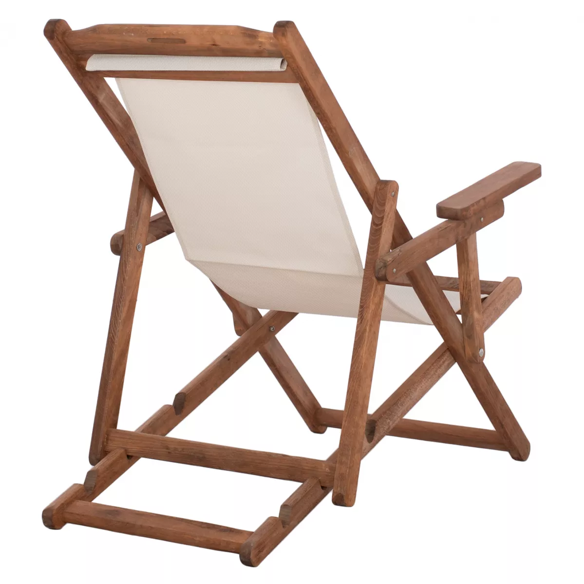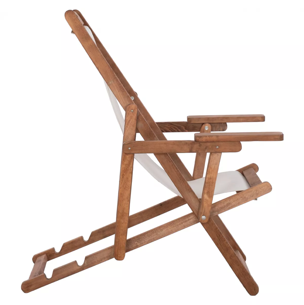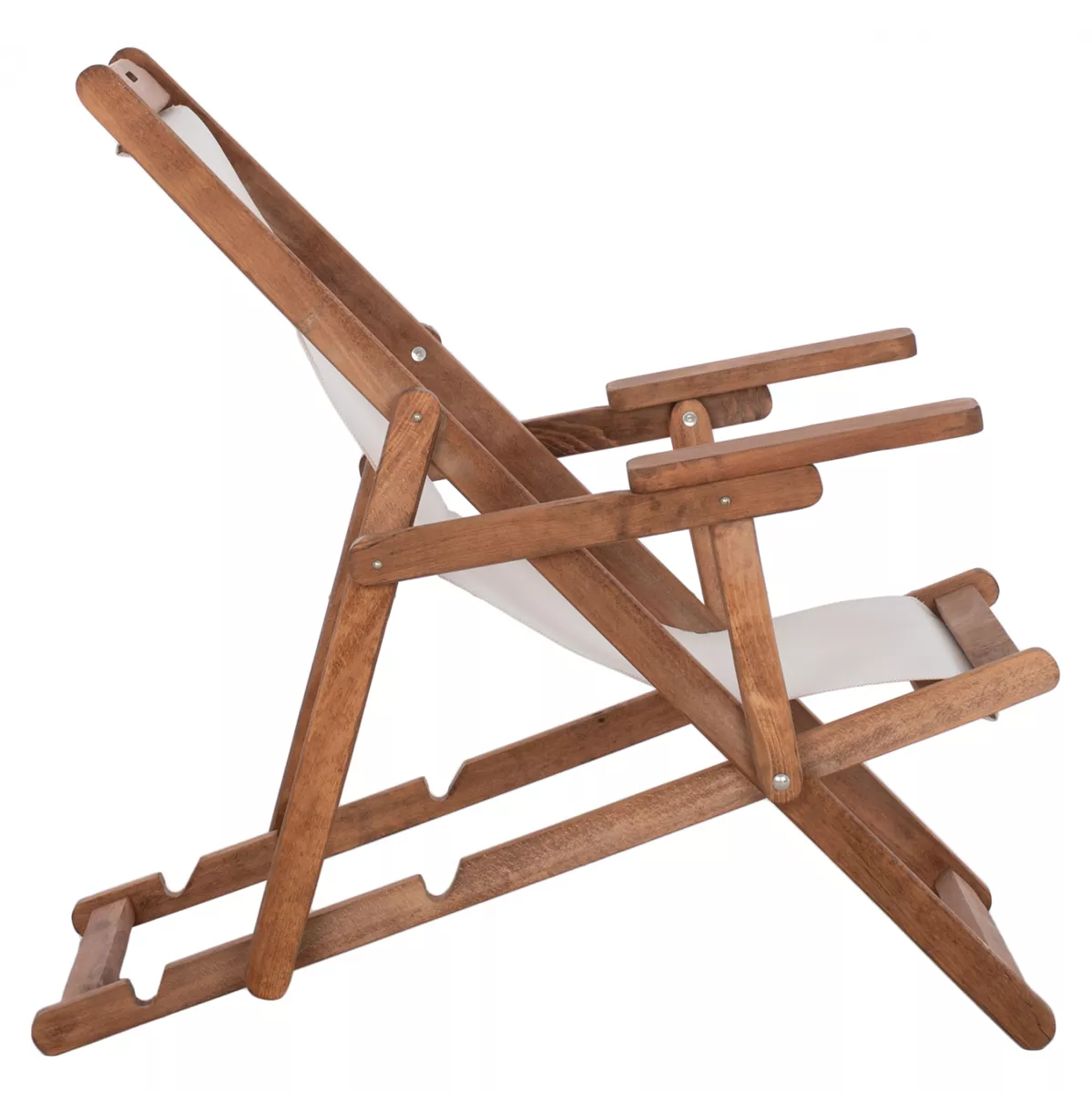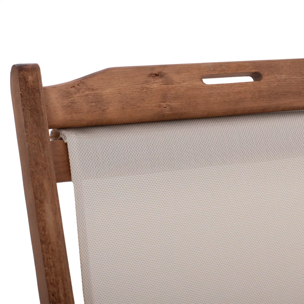 Σεζλόνγκ Λήμνος με μπράτσα σε καρυδί απόχρωση και pvc εκρου 62,5x97x105 εκ.