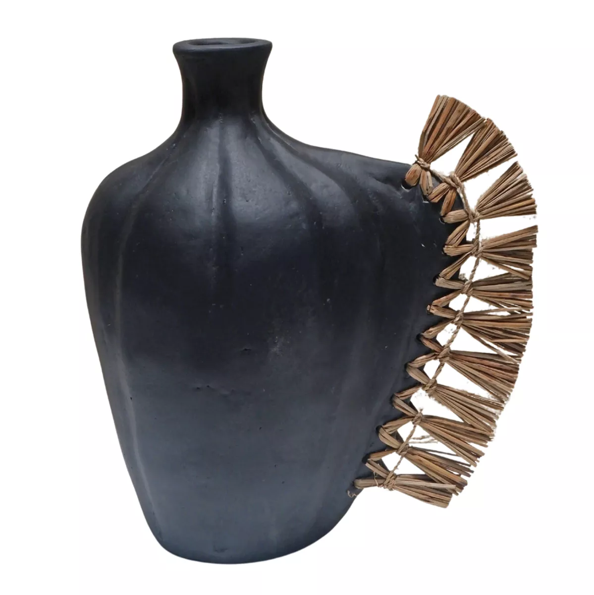 Το επιτραπέζιο χειροποίητο διακοσμητικό βάζο JEBB διαθέτει στενό στόμιο και είναι ένα πολύ ιδιαίτερο διακοσμητικό στοιχείο για κάθε χώρο. Ακολουθώντας την τελευταία τάση στην εσωτερική διακόσμηση, είναι κατασκευασμένο εξολοκλήρου από σχεδόν σαγρέ τερακότα σε ΜΑΥΡΟ χρώμα, ενώ στην μία πλευρά διαθέτει διακόσμηση με αποξηραμένο grass.