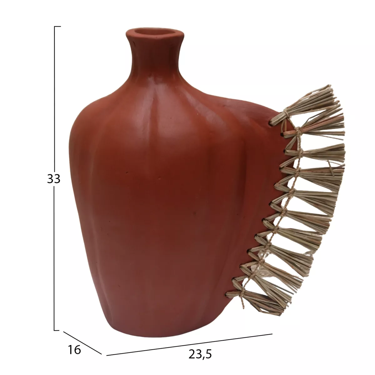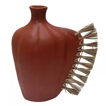 Το επιτραπέζιο χειροποίητο διακοσμητικό βάζο JEBB διαθέτει στενό στόμιο και είναι ένα πολύ ιδιαίτερο διακοσμητικό στοιχείο για κάθε χώρο. Ακολουθώντας την τελευταία τάση στην εσωτερική διακόσμηση, είναι κατασκευασμένο εξολοκλήρου από σχεδόν σαγρέ τερακότα στο ΦΥΣΙΚΟ της χρώμα, ενώ στην μία πλευρά διαθέτει διακόσμηση με αποξηραμένο grass.