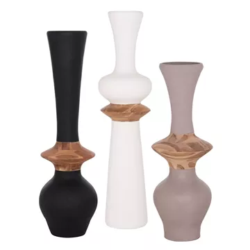Ανακαλύψτε το πολυτελές σετ 3τμχ χειροποίητων διακοσμητικών βάζων δαπέδου NEBULA! Πρόκειται για 3 βάζα σε 3 διαφορετικά χρώματα ΜΑΥΡΟ-ΛΕΥΚΟ-ΓΚΡΙ (TAUPE) και σε 3 διαφορετικά ύψη! Είναι κατασκευασμένα εξολοκλήρου από Fiber Cement με λαιμό από ποιοτικό ξύλο Teak, ενώ το ύψος τους τα καθιστά επιβλητικά αποτελώντας statement στον χώρο σας.