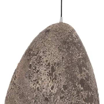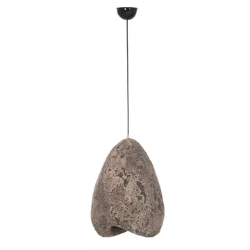 Το STONER (S) είναι ένα ιδιαίτερο κρεμαστό φωτιστικό οροφής που ξεχωρίζει χάρη στο μοναδικό του σχήμα που θυμίζει φυσική πέτρα. Κατασκευασμένο από ρητίνη (resin) σε γκριζωπό χρωματισμό με φυσική υφή, δημιουργεί ένα εντυπωσιακό διακοσμητικό στοιχείο που προσθέτει χαρακτήρα και αυθεντικότητα στον χώρο. Ο οργανικός σχεδιασμός του το καθιστά ιδανικό για σύγχρονους, minimal ή industrial χώρους που αναζητούν φωτιστικά με έντονη προσωπικότητα. Περισσότερο από ένα απλό φωτιστικό, το STONER λειτουργεί ως statement διακοσμητικό που δημιουργεί μια ιδιαίτερη ατμόσφαιρα φωτισμού.