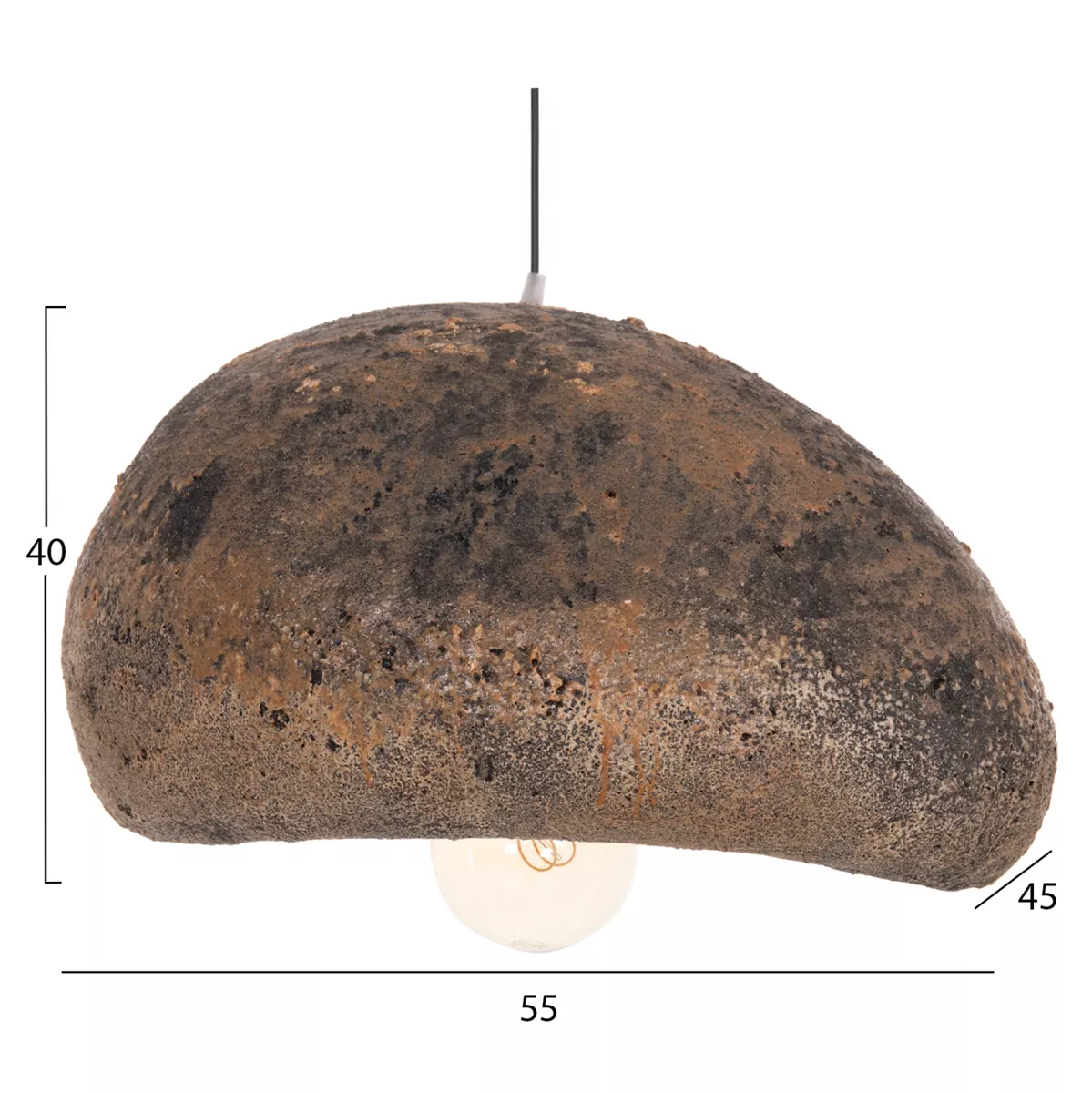 Το STONER (Μ) είναι ένα ιδιαίτερο κρεμαστό φωτιστικό οροφής που ξεχωρίζει χάρη στο μοναδικό του σχήμα που θυμίζει φυσική πέτρα. Κατασκευασμένο από ρητίνη (resin) σε καφε/γκριζωπό χρωματισμό με φυσική υφή, δημιουργεί ένα εντυπωσιακό διακοσμητικό στοιχείο που προσθέτει χαρακτήρα και αυθεντικότητα στον χώρο. Ο οργανικός σχεδιασμός του το καθιστά ιδανικό για σύγχρονους, minimal ή industrial χώρους που αναζητούν φωτιστικά με έντονη προσωπικότητα. Περισσότερο από ένα απλό φωτιστικό, το STONER λειτουργεί ως statement διακοσμητικό που δημιουργεί μια ιδιαίτερη ατμόσφαιρα φωτισμού.