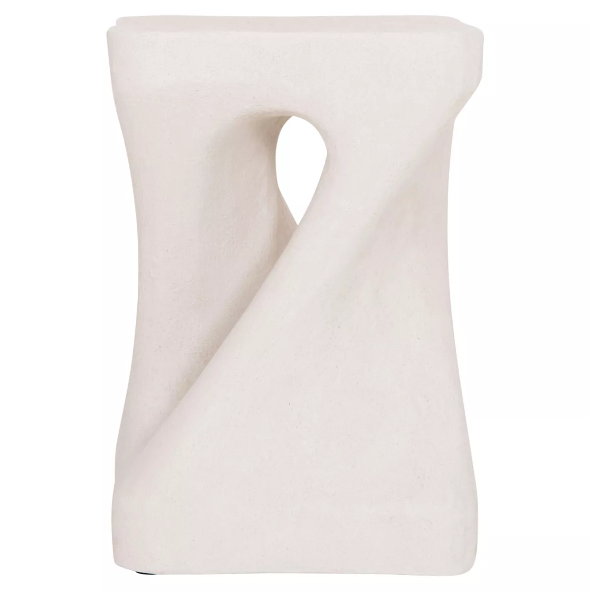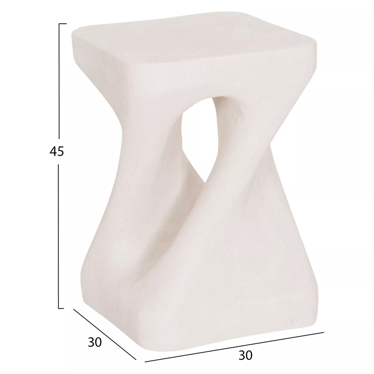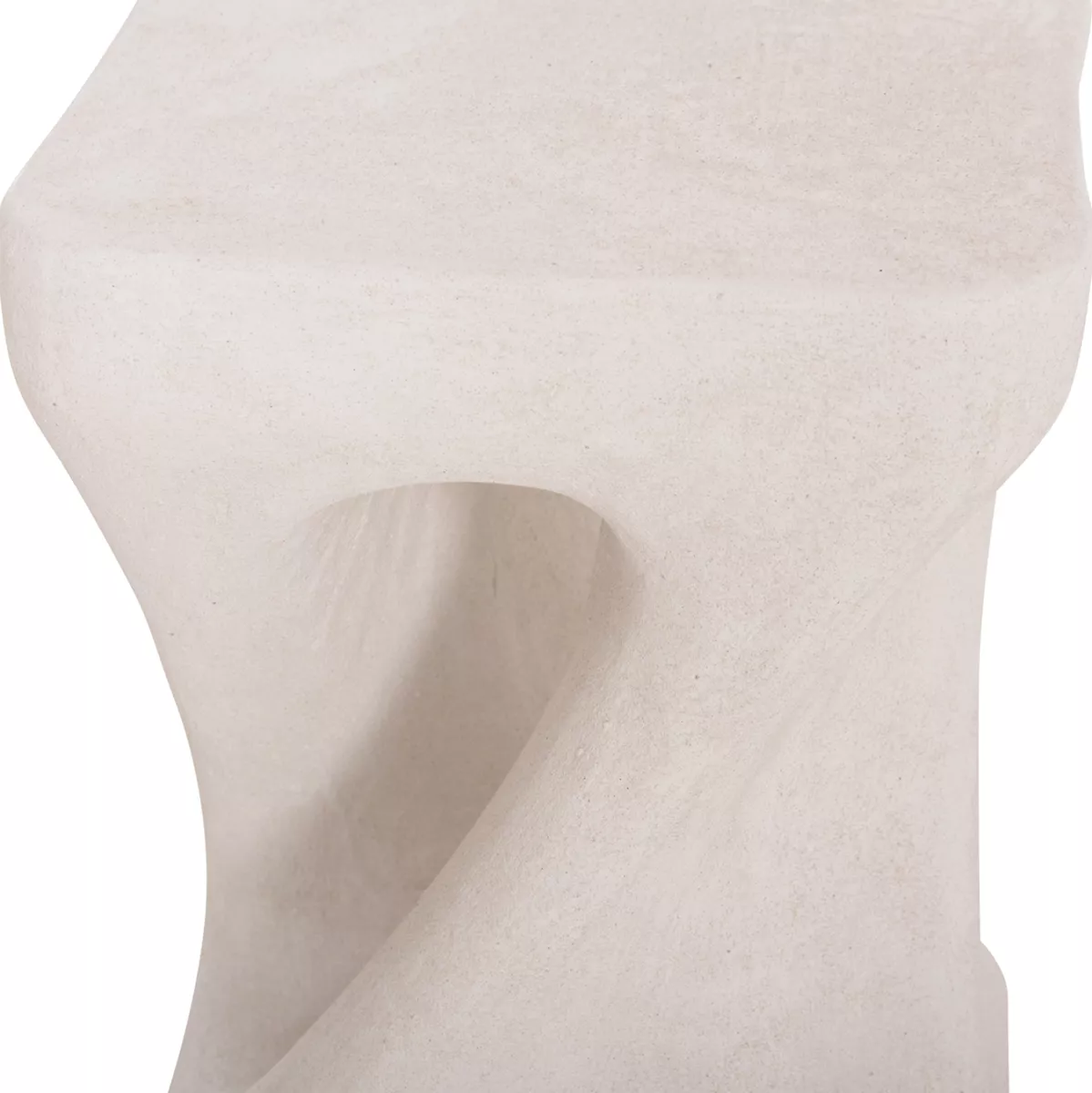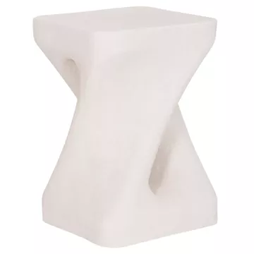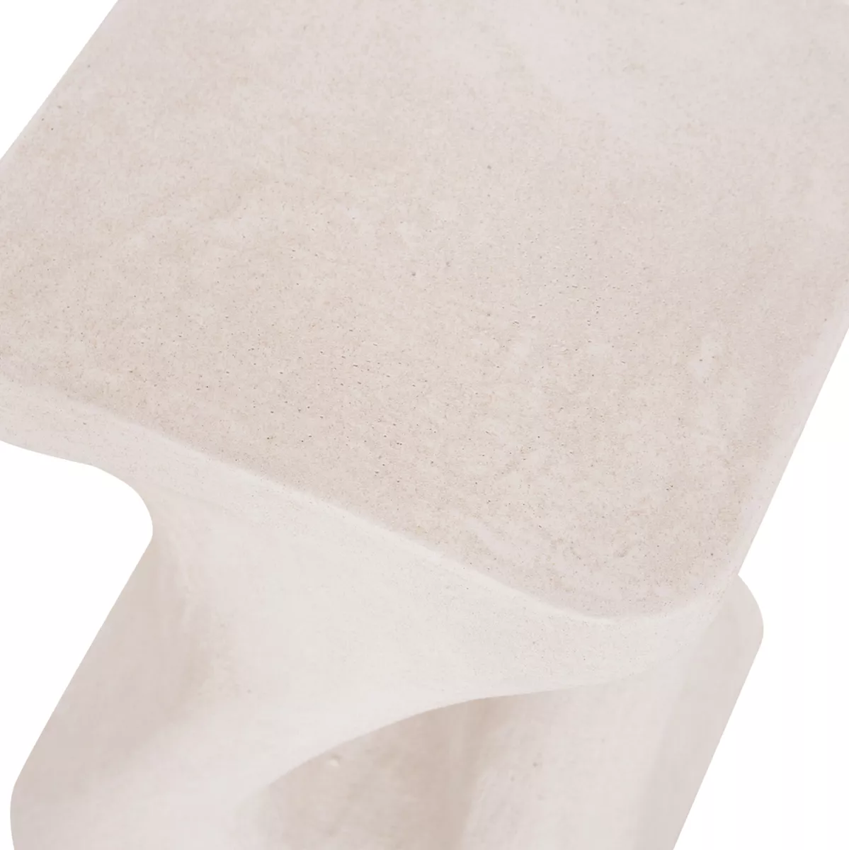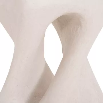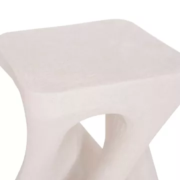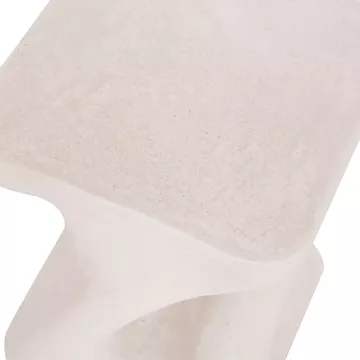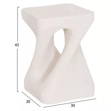 Το σκαμπό είναι κατασκευασμένο από polyresin (πολυρητίνη), ένα σύγχρονο συνθετικό υλικό υψηλής αντοχής που χρησιμοποιείται ευρέως σε premium διακοσμητικά αντικείμενα και έπιπλα design. Η πολυρητίνη προσφέρει σταθερότητα, ανθεκτικότητα στη χρήση και δυνατότητα δημιουργίας σύνθετων σχημάτων με ιδιαίτερη αισθητική. Η σαγρέ υφή στην επιφάνεια ενισχύει την αίσθηση φυσικού υλικού και χαρίζει στο αντικείμενο μια σύγχρονη, γλυπτική παρουσία.