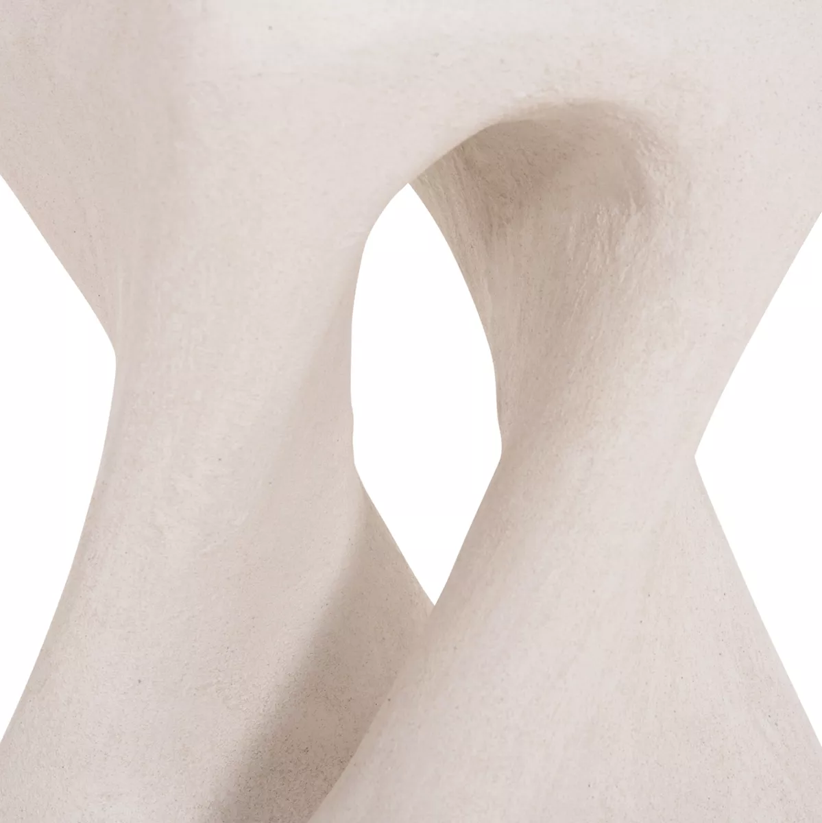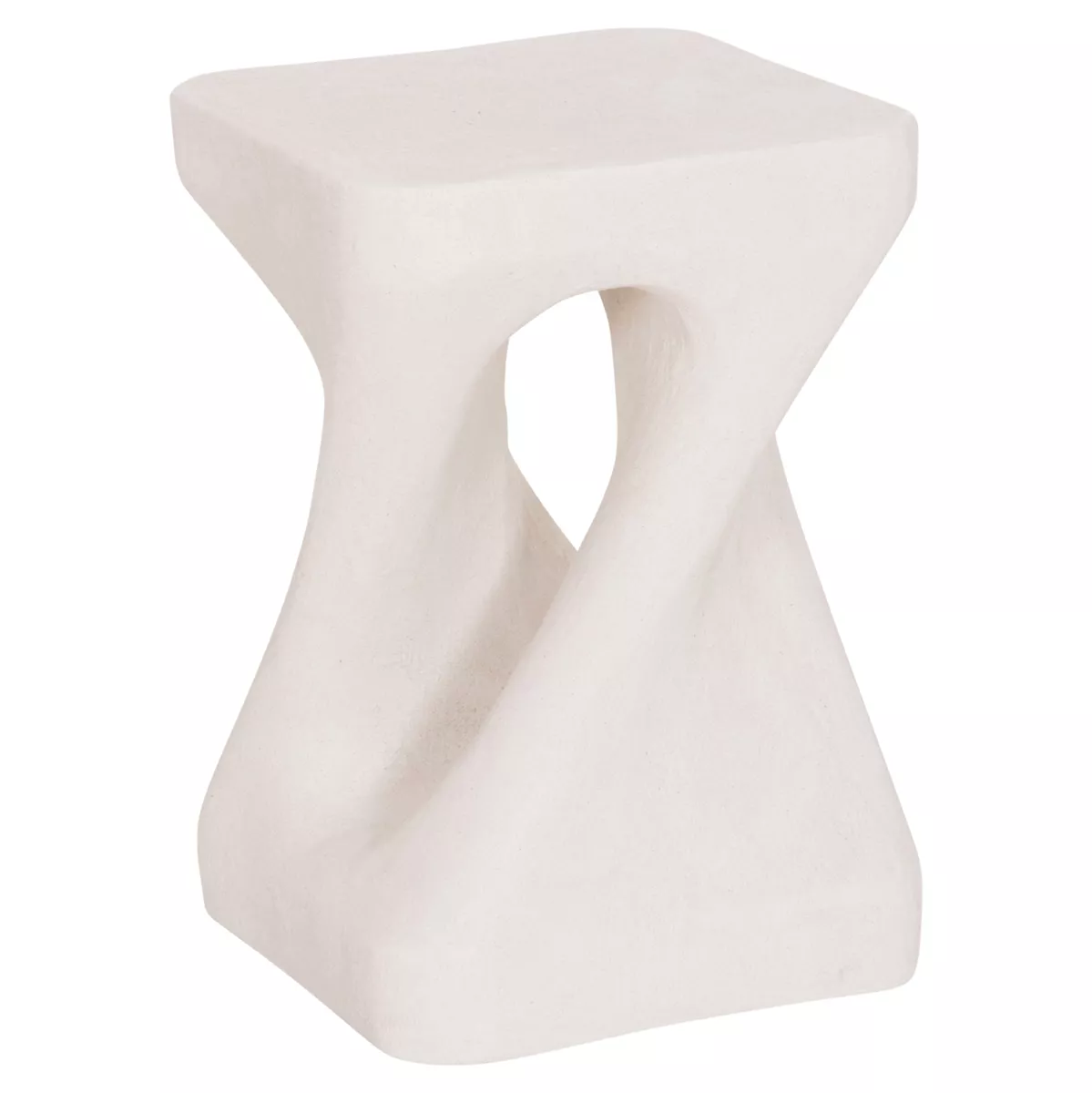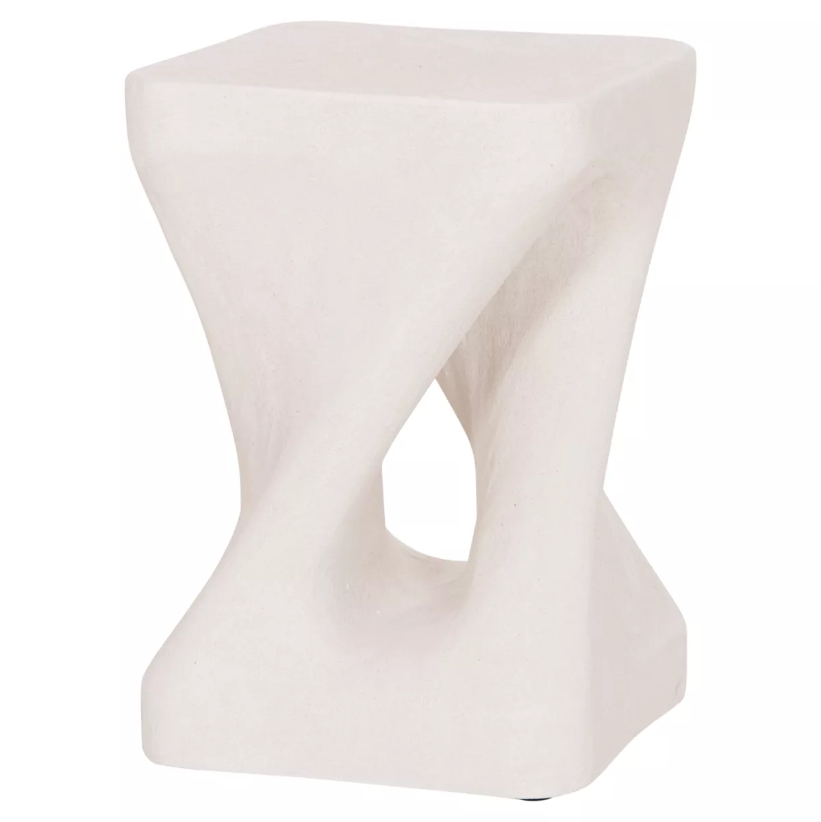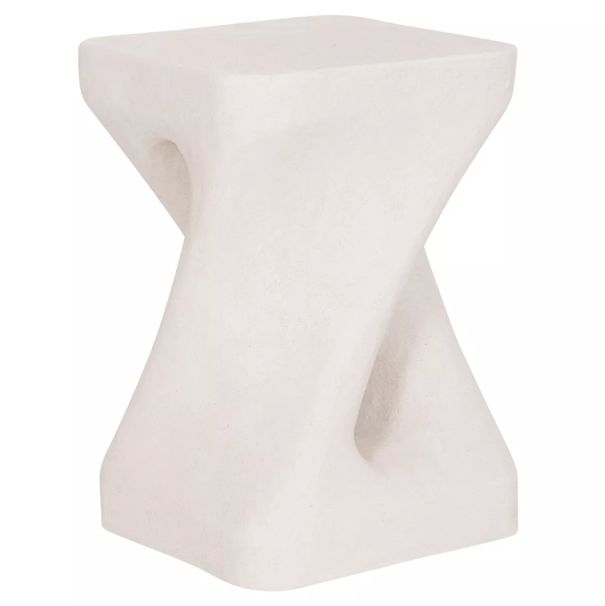 Το σκαμπό είναι κατασκευασμένο από polyresin (πολυρητίνη), ένα σύγχρονο συνθετικό υλικό υψηλής αντοχής που χρησιμοποιείται ευρέως σε premium διακοσμητικά αντικείμενα και έπιπλα design. Η πολυρητίνη προσφέρει σταθερότητα, ανθεκτικότητα στη χρήση και δυνατότητα δημιουργίας σύνθετων σχημάτων με ιδιαίτερη αισθητική. Η σαγρέ υφή στην επιφάνεια ενισχύει την αίσθηση φυσικού υλικού και χαρίζει στο αντικείμενο μια σύγχρονη, γλυπτική παρουσία.