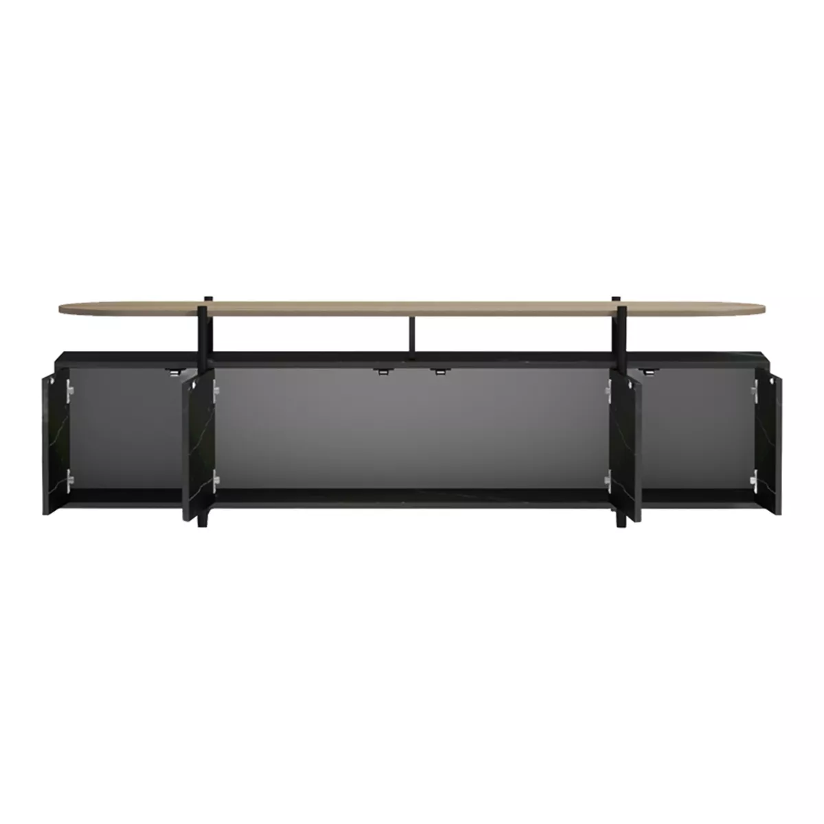 - Το ανοιχτό ράφι στην κορυφή, σε απόχρωση Sonoma, προσθέτει μια ζεστή πινελιά και μπορεί να χρησιμοποιηθεί για να τοποθετήσετε τηλεόραση, διακοσμητικά ή soundbar.