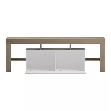 - Προσφέρει ποικιλία αποθηκευτικών λύσεων: Διαθέτει δύο ευρύχωρους κλειστους χώρους με διακριτικά χερούλια, ιδανικά για την αποθήκευση αντικειμένων που δεν θέλουμε να είναι ορατά (π.χ. καλώδια, τηλεχειριστήρια, παιχνίδια). Και ράφια που ειναι είναι ιδανικα για την τοποθέτηση ηλεκτρονικών συσκευών (π.χ. αποκωδικοποιητές, κονσόλες, DVD/Blu-ray players) ή για διακοσμητικά αντικείμενα.