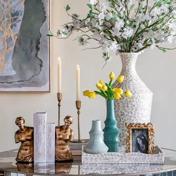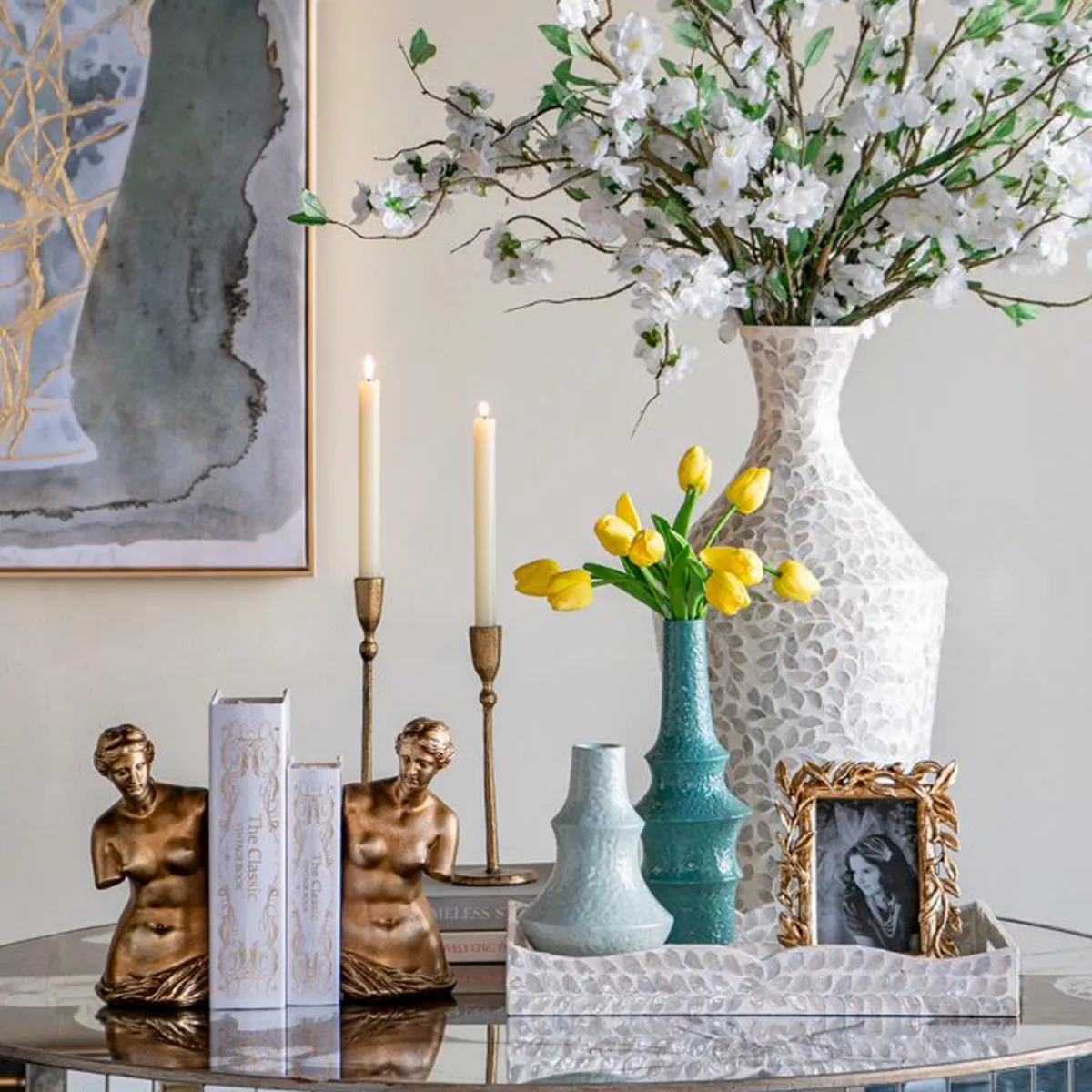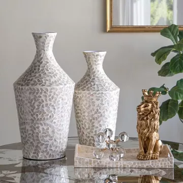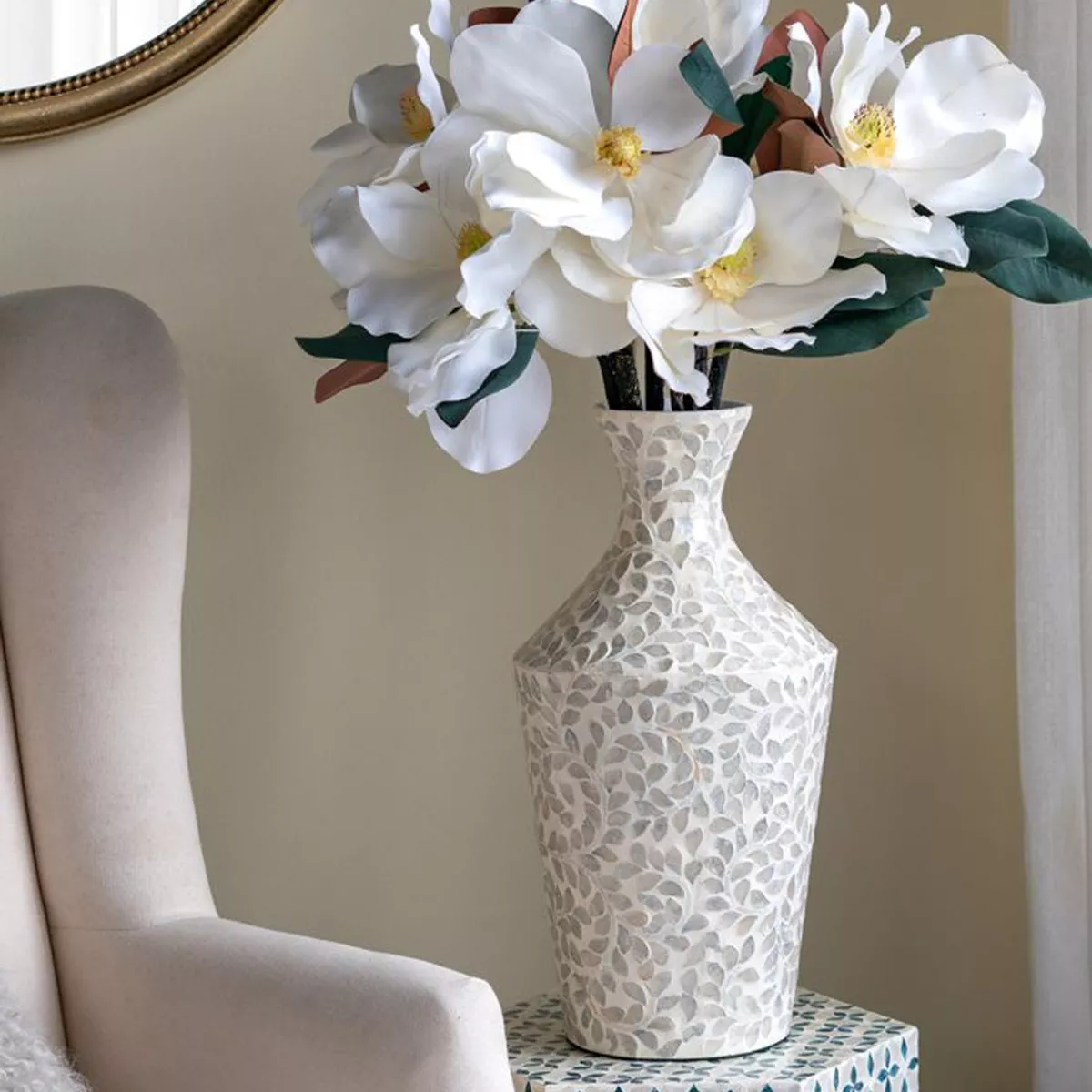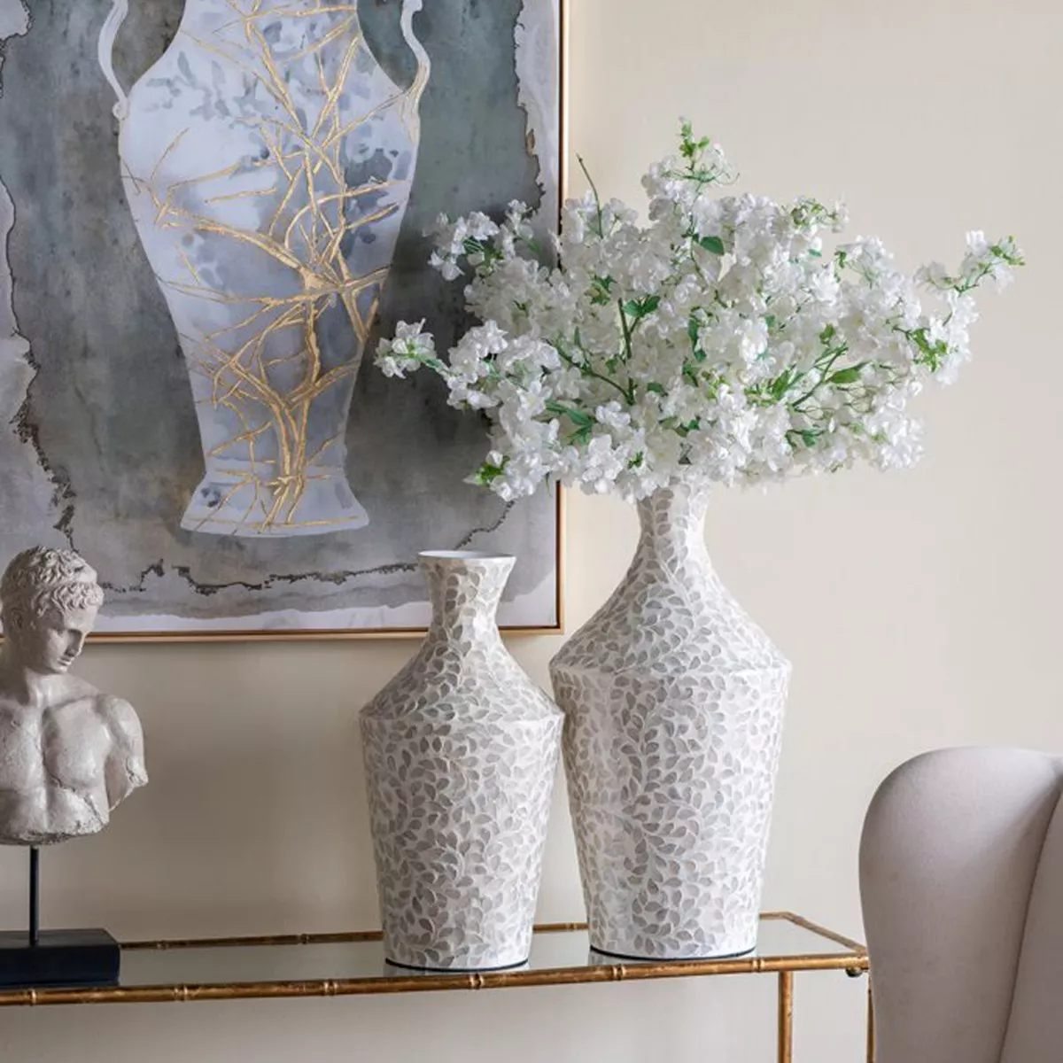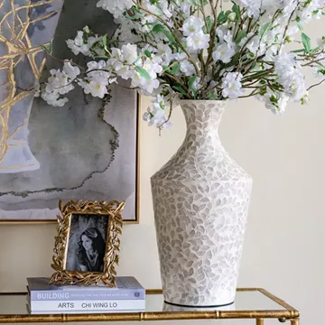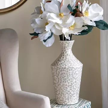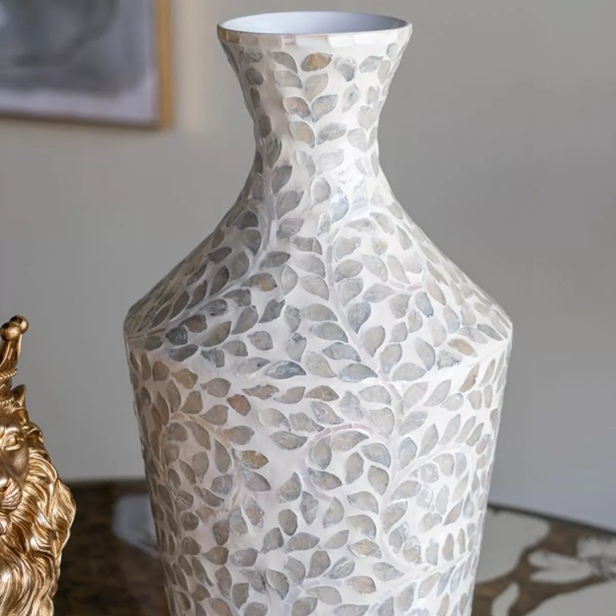 Artekko Ivory Γκρι Βάζο από Μπαμπού και Capiz (25x25x50)cm