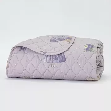 Κουβερλί κούνιας από ύφασμα 100% βαμβακερό, εμπριμέ, λιλά, με γραμμικό πολύγαζο σχέδιο.
