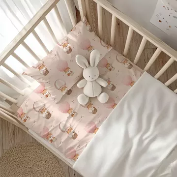 Σετ σεντόνια κούνιας με μαξιλαροθήκη από ύφασμα μερσεριζέ, 160 κλωστών, 100% βαμβακερό, εμπριμέ, σχέδιο ζωάκια σε αερόστατο.