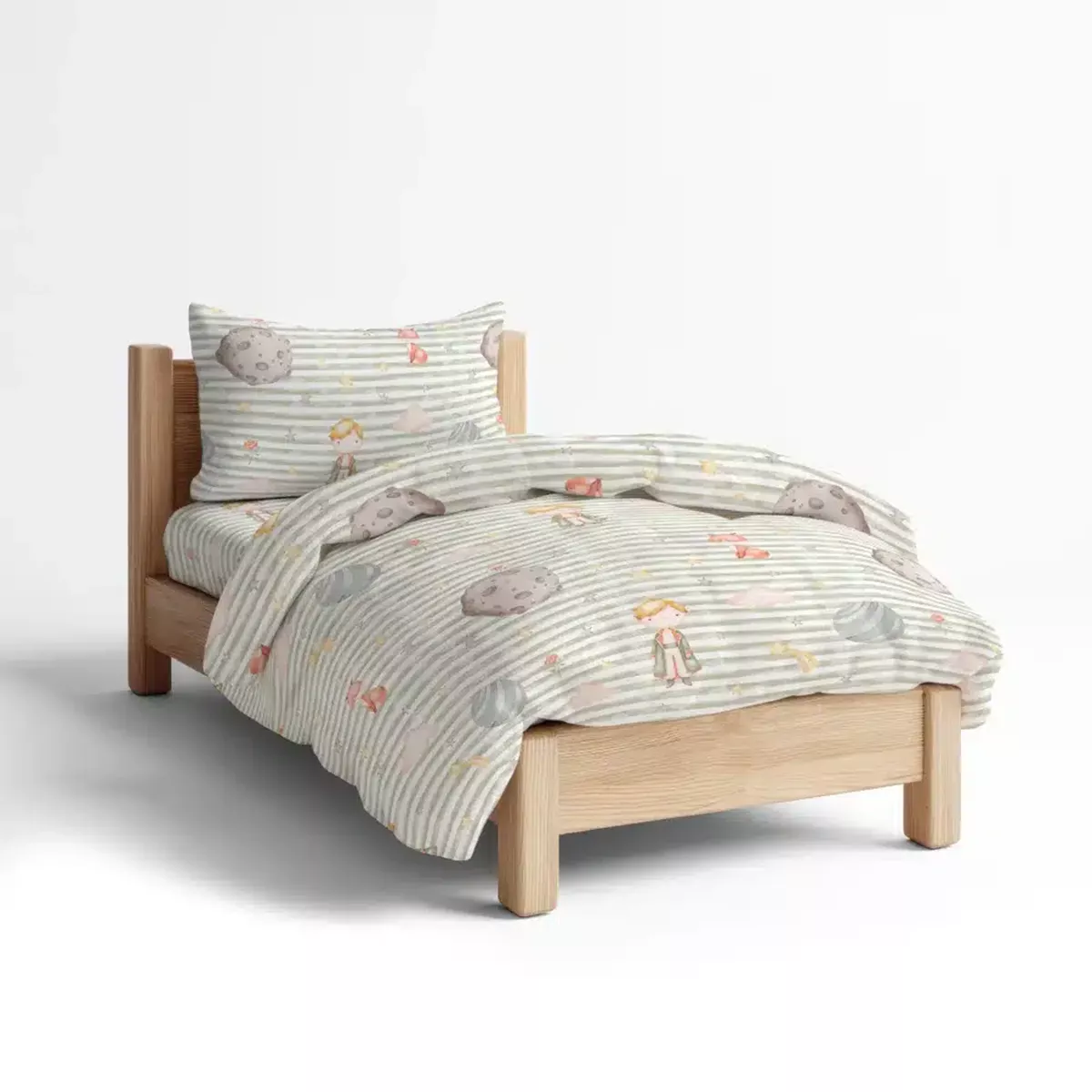 Σετ σεντόνια μονά με μαξιλαροθήκη, από ύφασμα μερσεριζέ, 144 κλωστών, 100% βαμβακερό, εμπριμέ, με παιδικό σχέδιο μικρός πρίγκιπας.