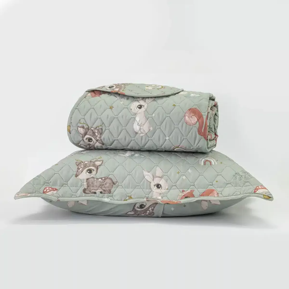 Σετ κουβερλί μονό με μαξιλαροθήκη oxford style από ύφασμα microfiber,100% πολυέστερ, εμπριμέ, με γραμμικό μοτίβο και παιδικό σχέδιο ζώα του δάσους.