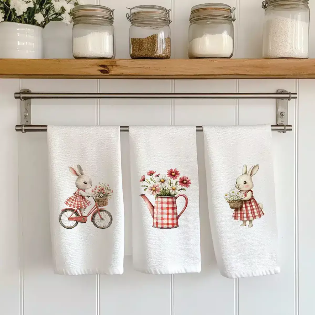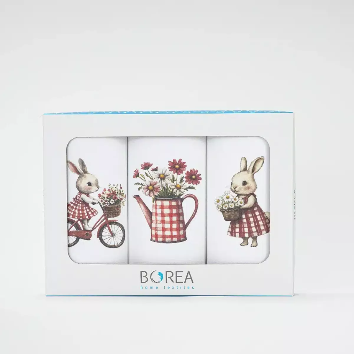 Σετ από 3 ποτηρόπανα κουζίνας polycotton, 50% βαμβακερό-50% πολυέστερ, λευκό με ψηφιακή εκτύπωση σε κουτί συσκευασίας δώρου. Για σκούπισμα των πιάτων χωρίς χνούδι.