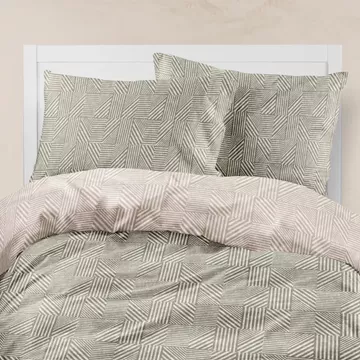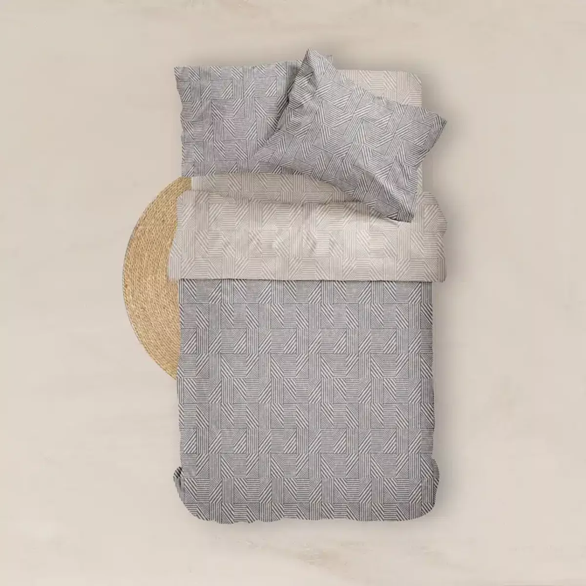 Σετ σεντόνια μονά με μαξιλαροθήκη από ύφασμα μερσεριζέ, 160 κλωστών, 100% βαμβακερό, συνδυασμός εμπριμέ γεωμετρικού μοτίβου.Διατίθεται σε 2 χρώματα.
