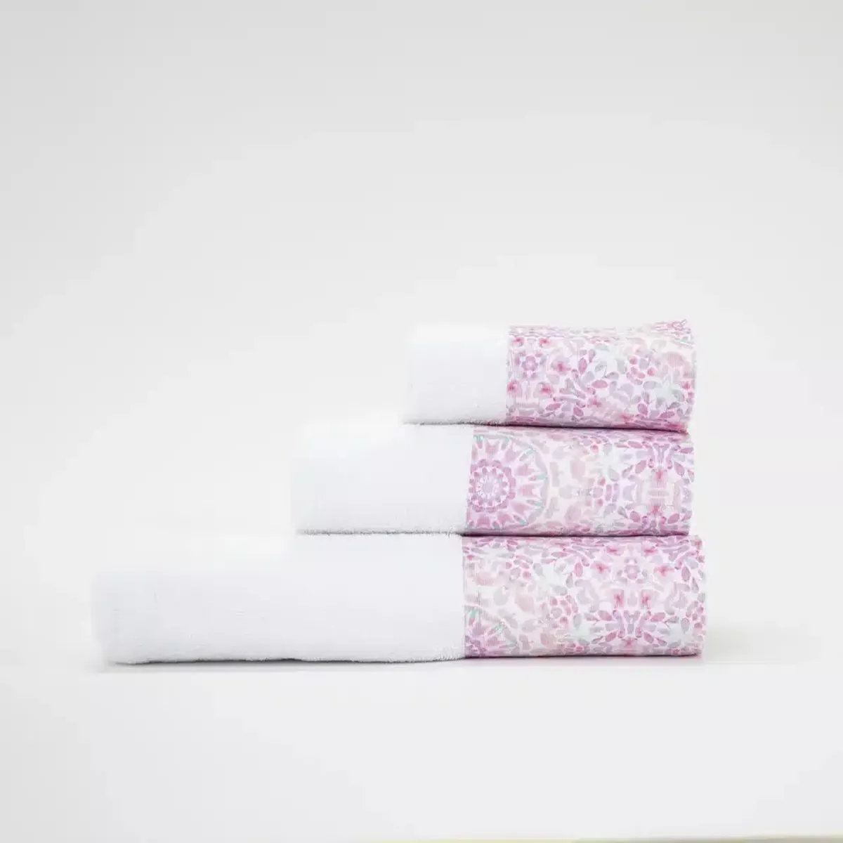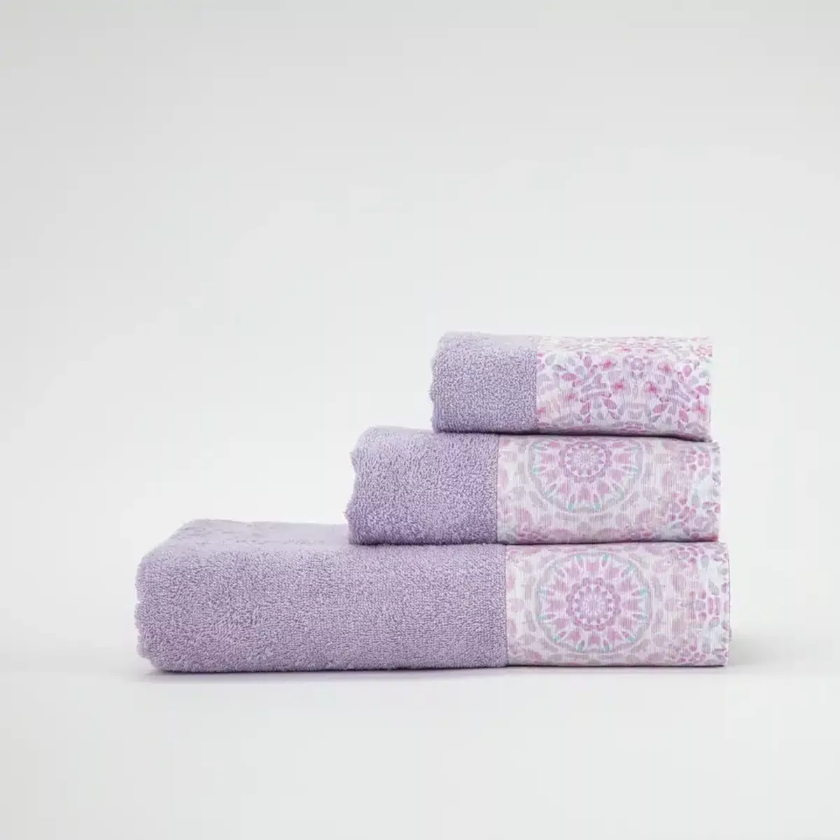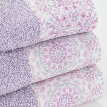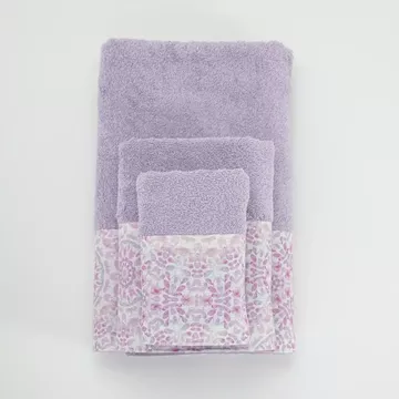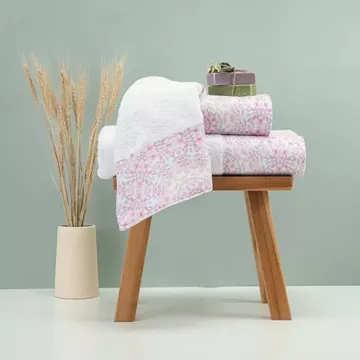 Σετ πετσέτες 3 τεμαχίων, μπάνιου, προσώπου και χειρός, από ύφασμα φροτέ, πενιέ, 100% βαμβακερό, με διακοσμητική φάσα ύφασμα. Διατίθεται σε 2 χρώματα.