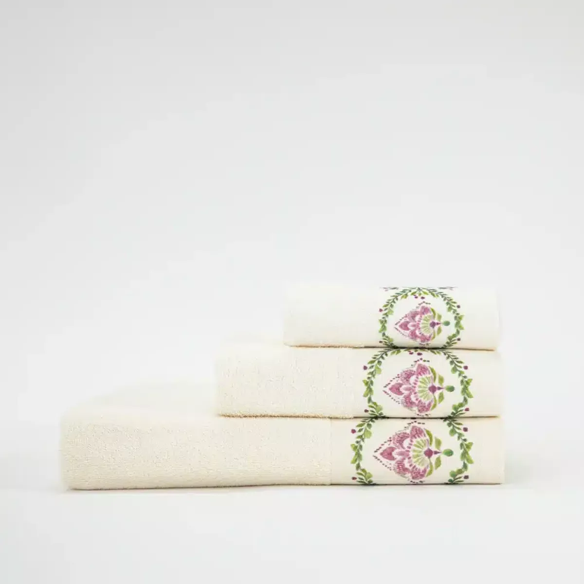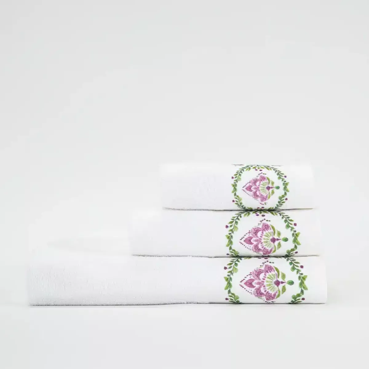 Σετ πετσέτες 3 τεμαχίων, μπάνιου, προσώπου και χειρός, από ύφασμα φροτέ, πενιέ, 100% βαμβακερό, με ψηφιακή εκτύπωση.Διατίθεται σε 2 χρώματα.