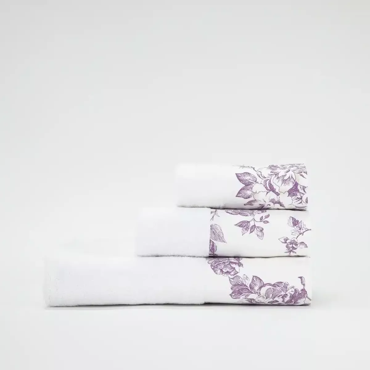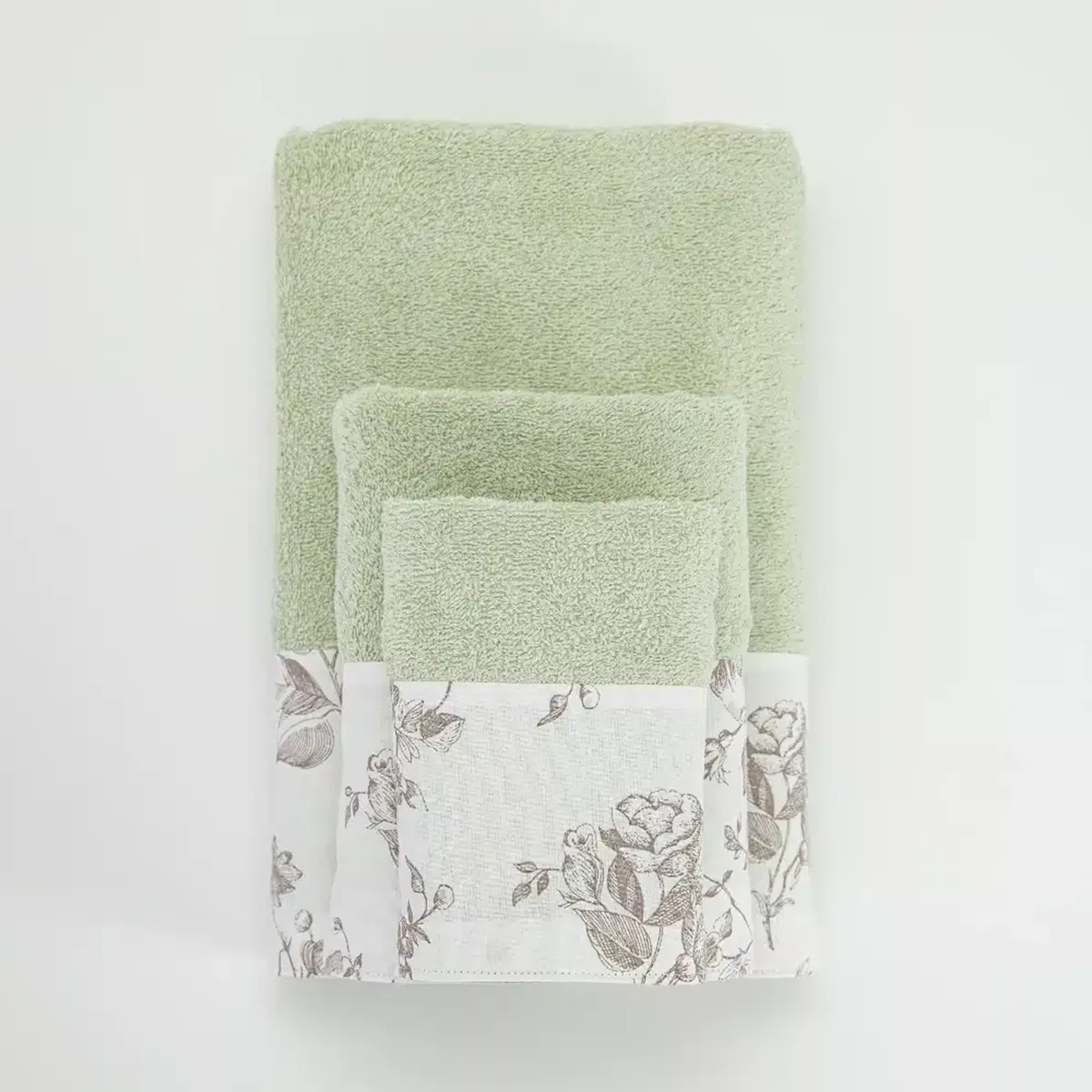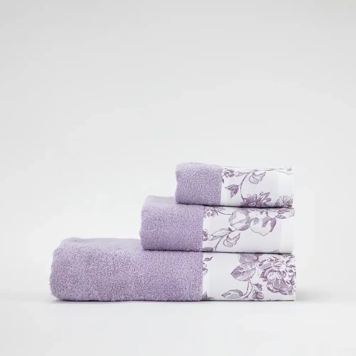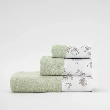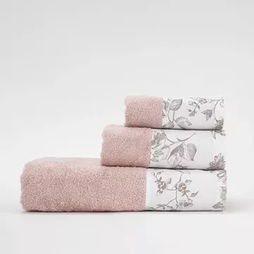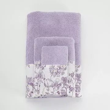 Σετ πετσέτες 3 τεμαχίων, μπάνιου, προσώπου και χειρός, από ύφασμα φροτέ, πενιέ, 100% βαμβακερό, με διακοσμητική φάσα ύφασμα. Διατίθεται σε 4 χρώματα.